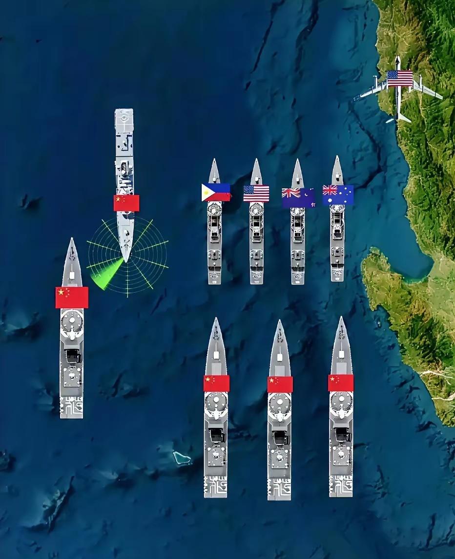 美:别贴这么紧,行不行! 菲:不,有安全感。 美:散开,按计划演练! 澳:演什么?忘了,这不挺好。 美:我去,不是来遛弯的,赶紧的分开。 菲:就不得,分不开! 美:为什么?! 菲:一个人,害怕。 美:怕啥? 澳:怕飞机掉海里,怕转头不见你! 美:你特……,算了,算了,保持直行! 澳新菲:收到! 中:不错,队伍很直溜,别乱拐! 美:谁在说话! 中:你找飞机吗?可以帮你! 美:
