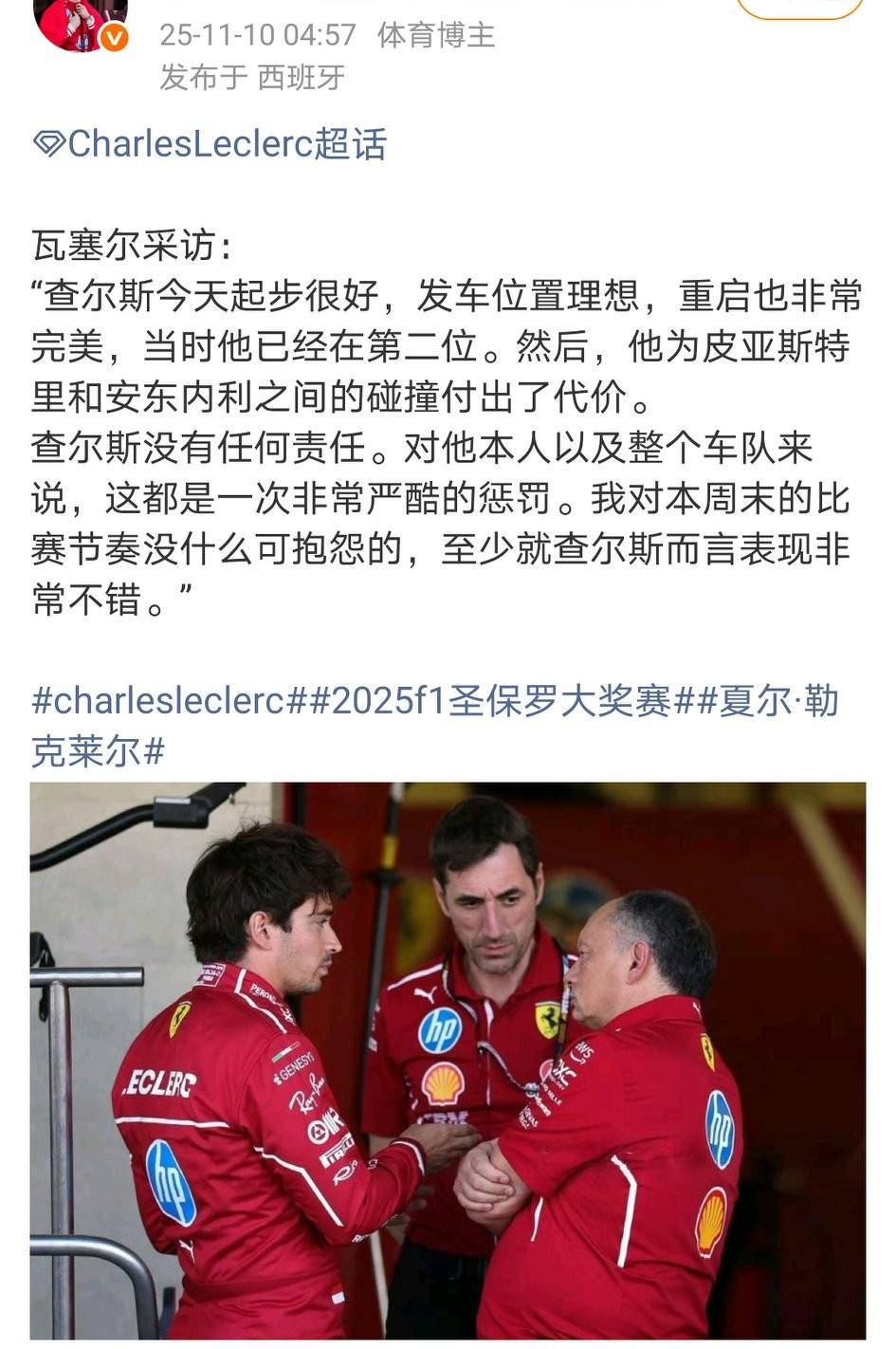 这个周末法拉利确实运气差,双车退赛,乐扣被卷入皮亚和安东内利的事故,无辜躺枪但他却是唯一受害者。 这就是比赛……好在铁佛寺早就对法拉利不抱希望了,想要法拉利夺冠得等国足成功进军世界杯正赛。
