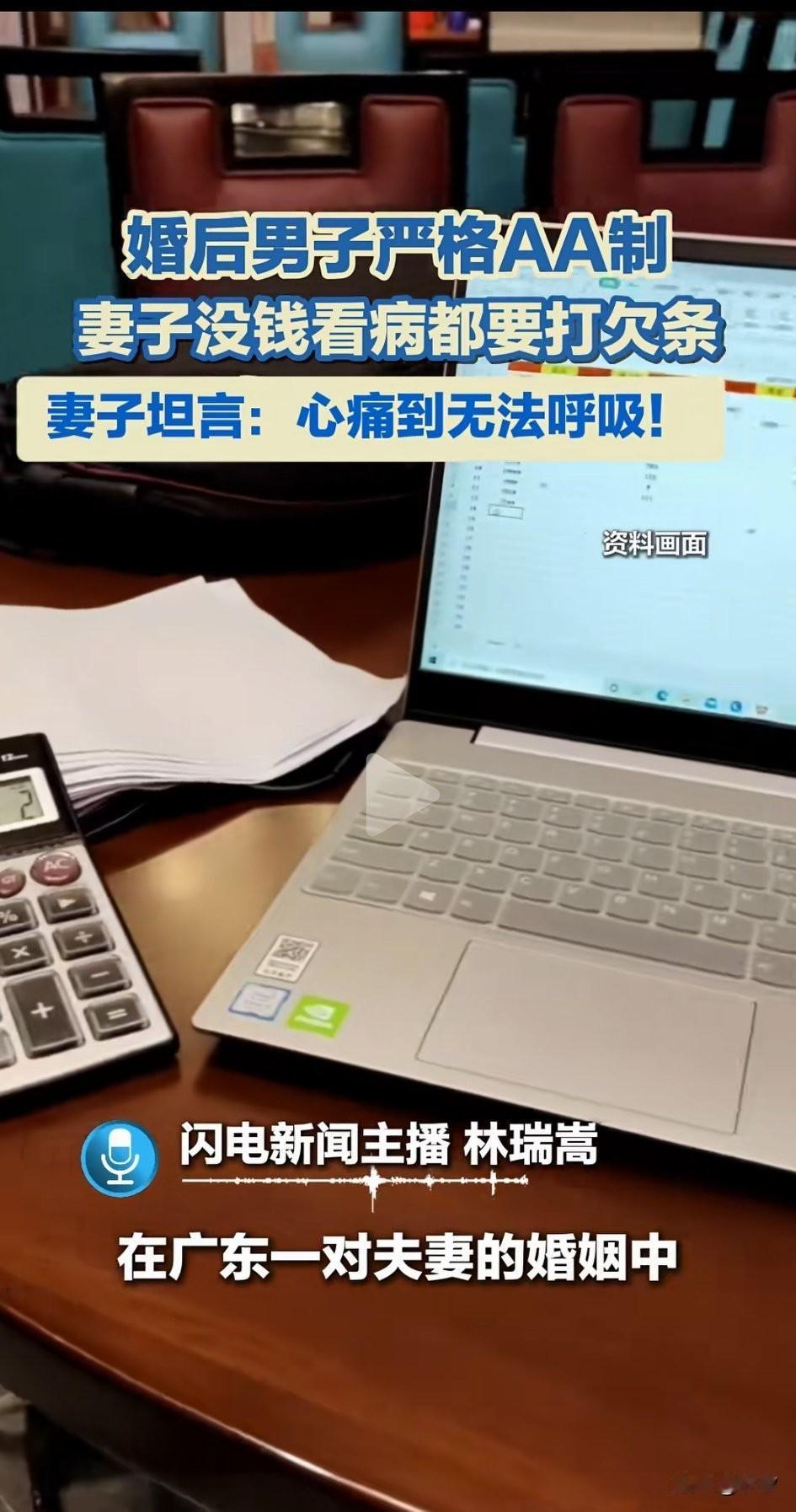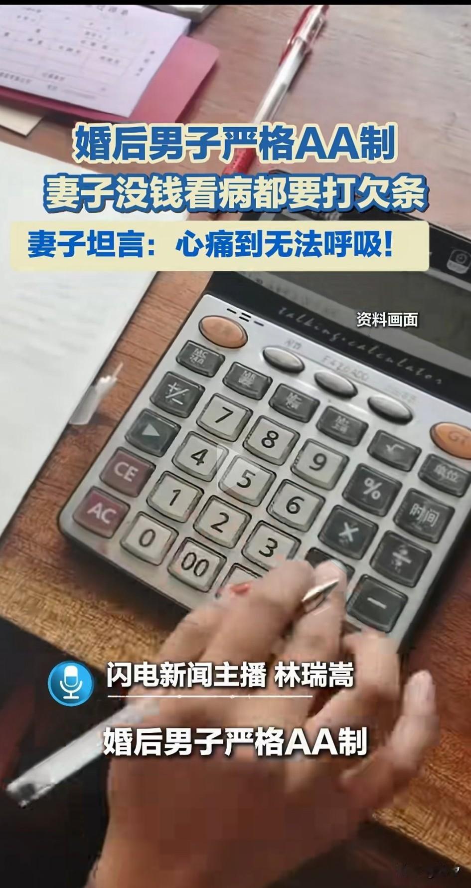广东一对夫妻婚后严格实行AA制, 连看病吃完和孩子的学费都付不起, 只能给老公打欠条, 这可是狠狠打了现代独立女性的脸, 不是一直要求男女平等吗? 这不就满足了她的要求, 结果女方倒是不乐意了, 看着婚姻账本, 居然心痛到无法呼吸, 婚姻本事两人搭伙过日子, 国外都是如此的, 只有中国是男人承担了所有, 如今独立女性嘴上都很独立, 一道出钱养家都不肯, 那是假独立女性! 真的实行一切AA了, 又开始道德指责了! 大家对于这对夫妻这种生活方式怎么看? 家庭经济AA制 aa制婚姻 AA制夫妻 AA制恋爱观 AA制与爱情