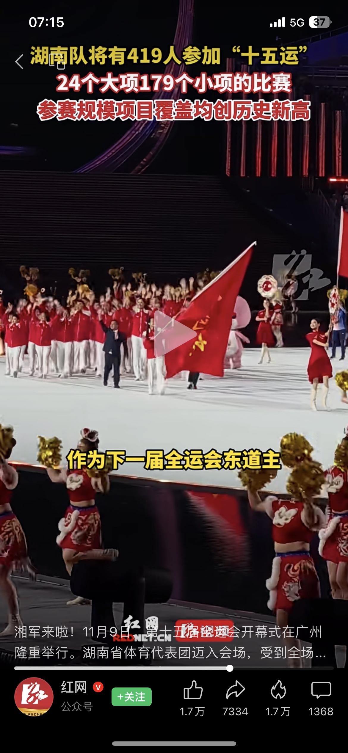 湖南队在十五运杀疯了:419人参赛创纪录,下届东道主直接拿捏! 十五运开幕式上的湖南队,排面直接拉满! 419人参赛、覆盖24个大项179个小项——规模+项目都是历史最高!进场时“中部崛起 ‘湘’约全运”的口号一喊,全场都炸了! 关键还是下一届全运会东道主,这波直接把“湘军气势”焊死,坐等他们拿牌拿到手软! 你说:湖南队这次能拿多少金牌?赌一个! 湖南队十五运创纪录
