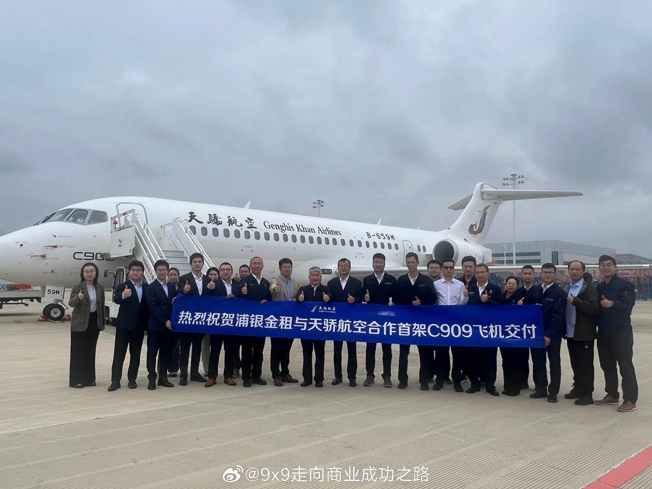 第172架C909交付天骄航空! 这是天骄航空接收的第8架C909客机,天骄航空机队再次扩容! 作为内蒙古的航空公司,天骄航空自成立以来的发展状况非常的好, C909的日利用率属于所有国内用户的前列。 内蒙古城市之间距离非常的大,非常适合支线航空的运行,同时内蒙古的地级市,也适合开行向大城市的支线航班。
