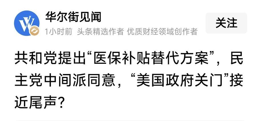 美国政府关门这场闹剧好像有了新转机。共和党提出“医保补贴替代方案”,民主党中间派也同意了,这让“美国政府关门”似乎接近尾声。当地时间11月9日,参议院多数党领袖表示结束政府“停摆”的潜在协议“正在逐步达成”,还计划最早周日进行测试性投票。一群参议院民主党中间派倾向支持支出方案,特朗普也说快结束停摆了。 可之前这关门的40天里,普通人遭了大罪。机场混乱、食品券系统断线,几十万公务员没工资。两党为了每年140亿美元、只占联邦总支出0.3%的医疗补贴吵得不可开交,损失远超补贴本身。希望这次真能结束这场闹剧吧。