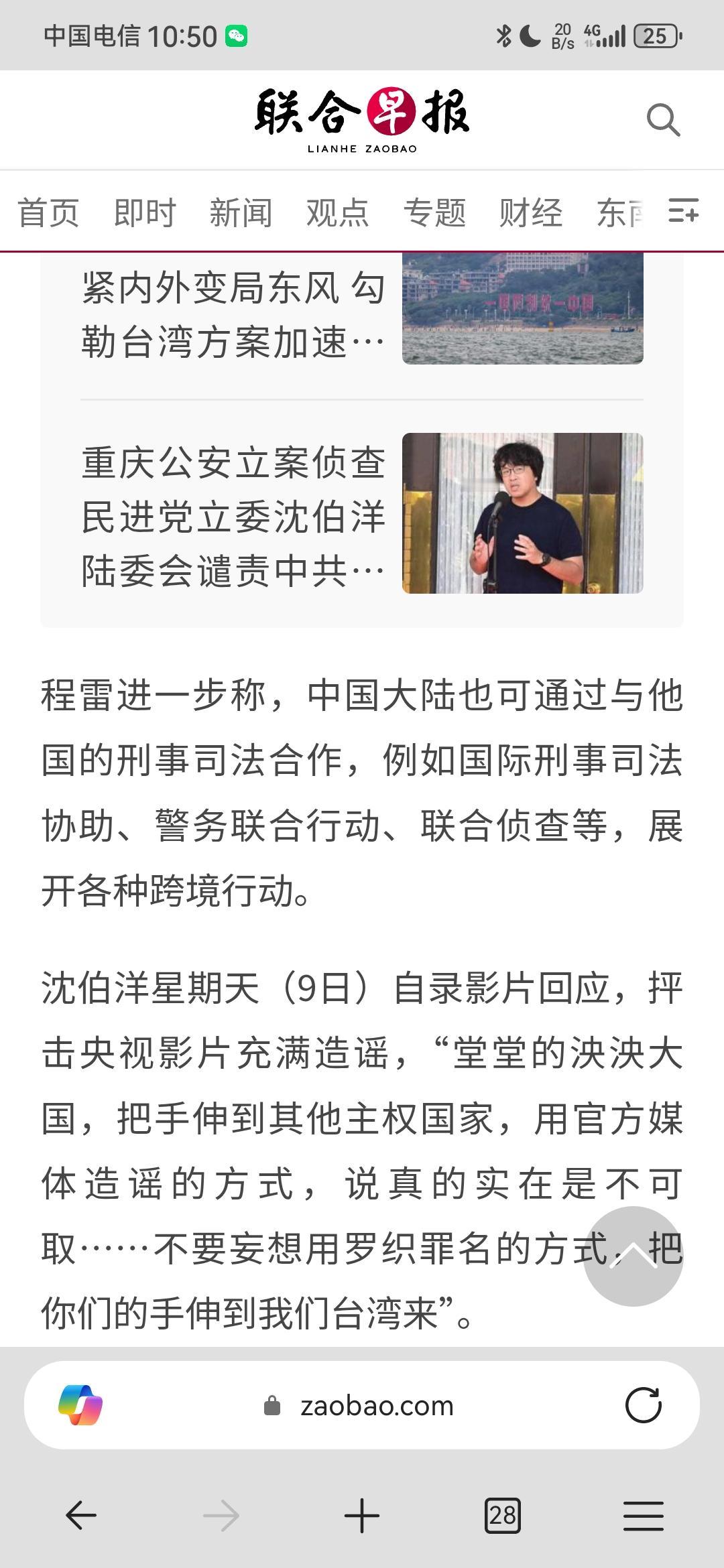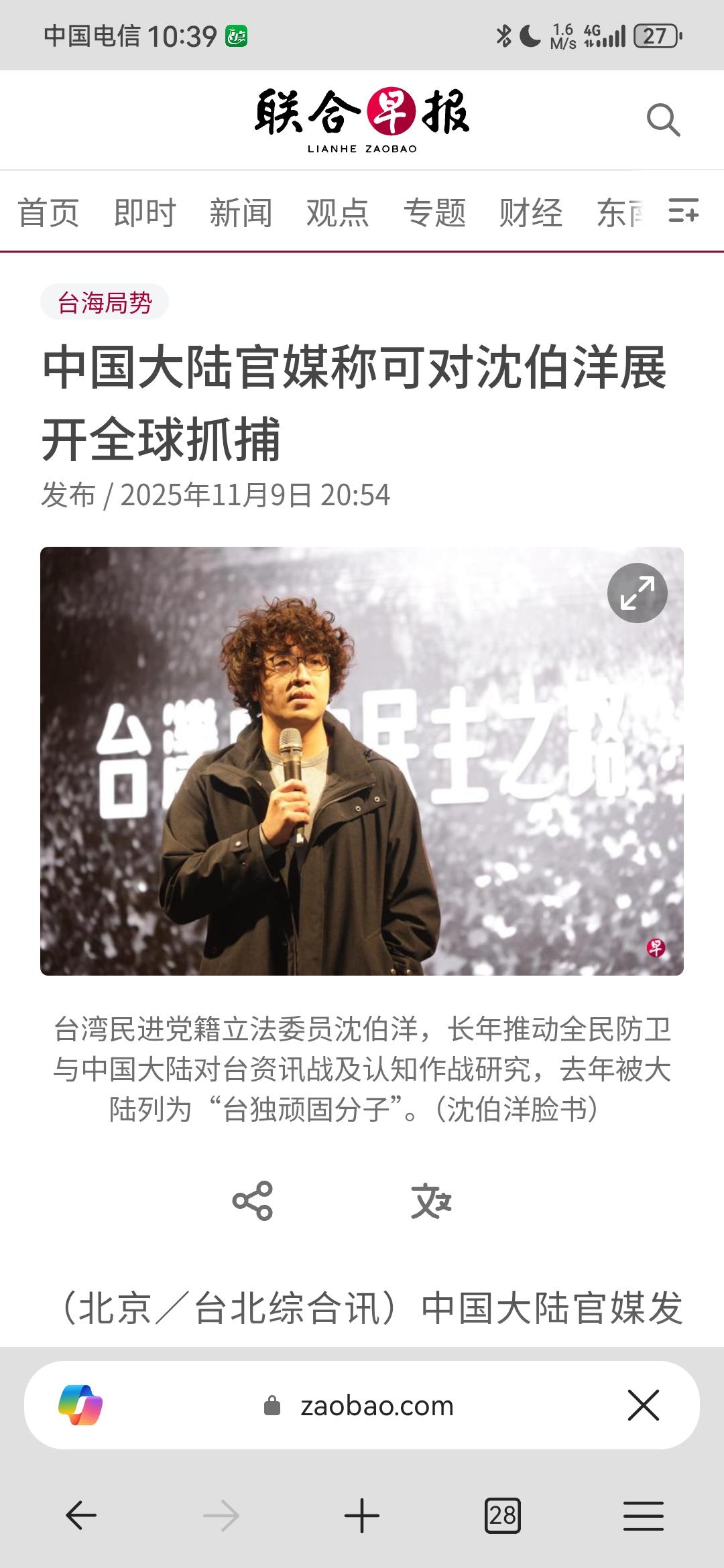 联合早报11月9日报道,说中国官媒称可对沈伯洋展开全球追捕,沈伯洋随后则是自录影片对此回应道:“不要妄想用罗织罪名的方式,把你们的手伸到我们台湾来。” 看到沈伯洋这个回应,不由得笑了。难道他真的以为我们是开玩笑的吗?说了可以对他展开全球追捕,接下来自然就会真的展开行动,我们中国有一个特点,那就是不行动则已,一旦展开行动,必定已经是有十足把握,将雷霆万钧强势碾压。既然我们已经决定立案调查沈伯洋,那绝对不可能只是说说而已,要不了多久肯定会有结果的。 沈伯洋还说什么“罗织罪名”,“把手伸到台湾”。首先,沈伯洋罪行累累,早就已经被我们调查得清清楚楚,重庆警方现在更是已经掌握大量与沈伯洋有关的犯罪线索,接下来随时都能够通过国际刑警组织等机构,对沈伯洋展开抓捕;其次台湾是中国不可分割的一部分,什么叫做“把手伸到台湾”?简直是滑天下之大稽。 沈伯洋现在已经是走投无路了。他父亲已经无法在大陆经商,他儿子女儿想要去欧洲读书,都直接被欧洲国家拒绝,可以说因为他一个人的原因,现在他全家都受到了连累,都只能被困在台湾省内,而且即便在台湾,他现在也受到各方排挤,日子越来越不好过。可以说,从他选择成为“台独”的那一刻,他的命运就已经注定!