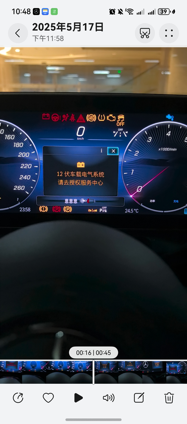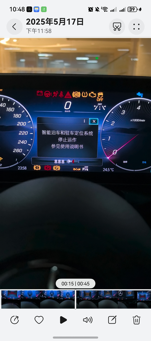 23款奔驰C260L软件第二次死机 买车两年以来,软件死机第二次。车辆停在商场地下车库,再次开门后,报警声响起。各种报警,各种功能失效,按客服建议关电 锁车20分钟,还是无法解决。检查电瓶,电瓶没有问题,手刹可以解除,但档位信息都没了。等2小时后车辆被拖到4儿子店,软件又恢复正常了。