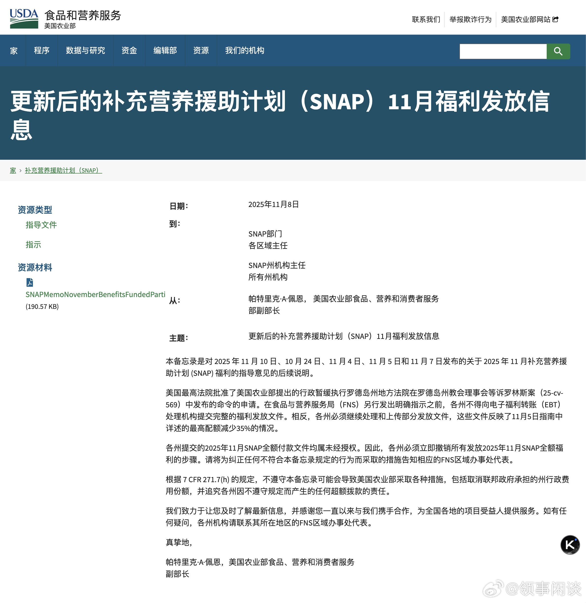 此前,该部门于周五发布备忘录称,正在努力为 11 月份的食品券福利提供全额资金,以遵守联邦法院的命令,该过程应于周五晚些时候完成。