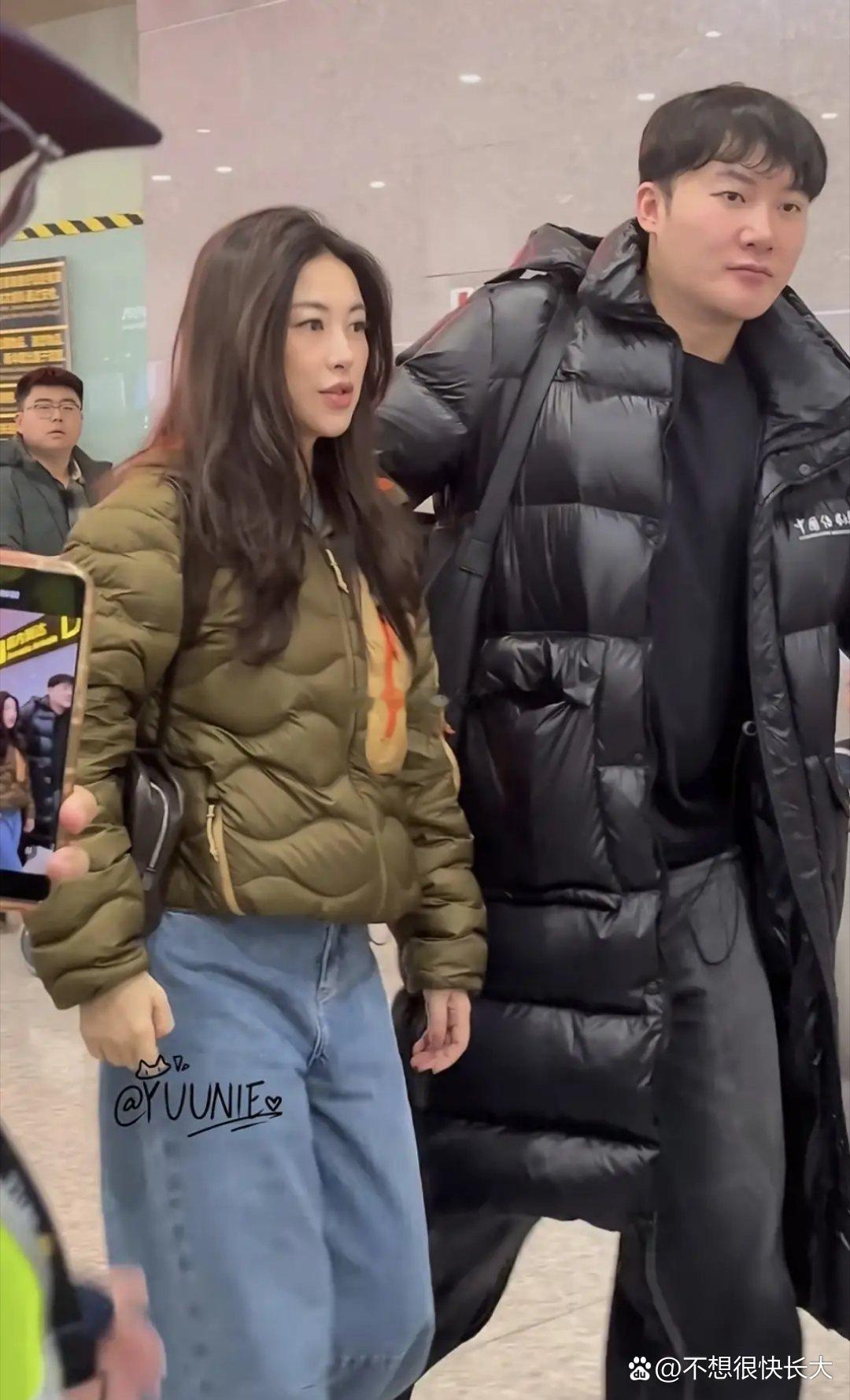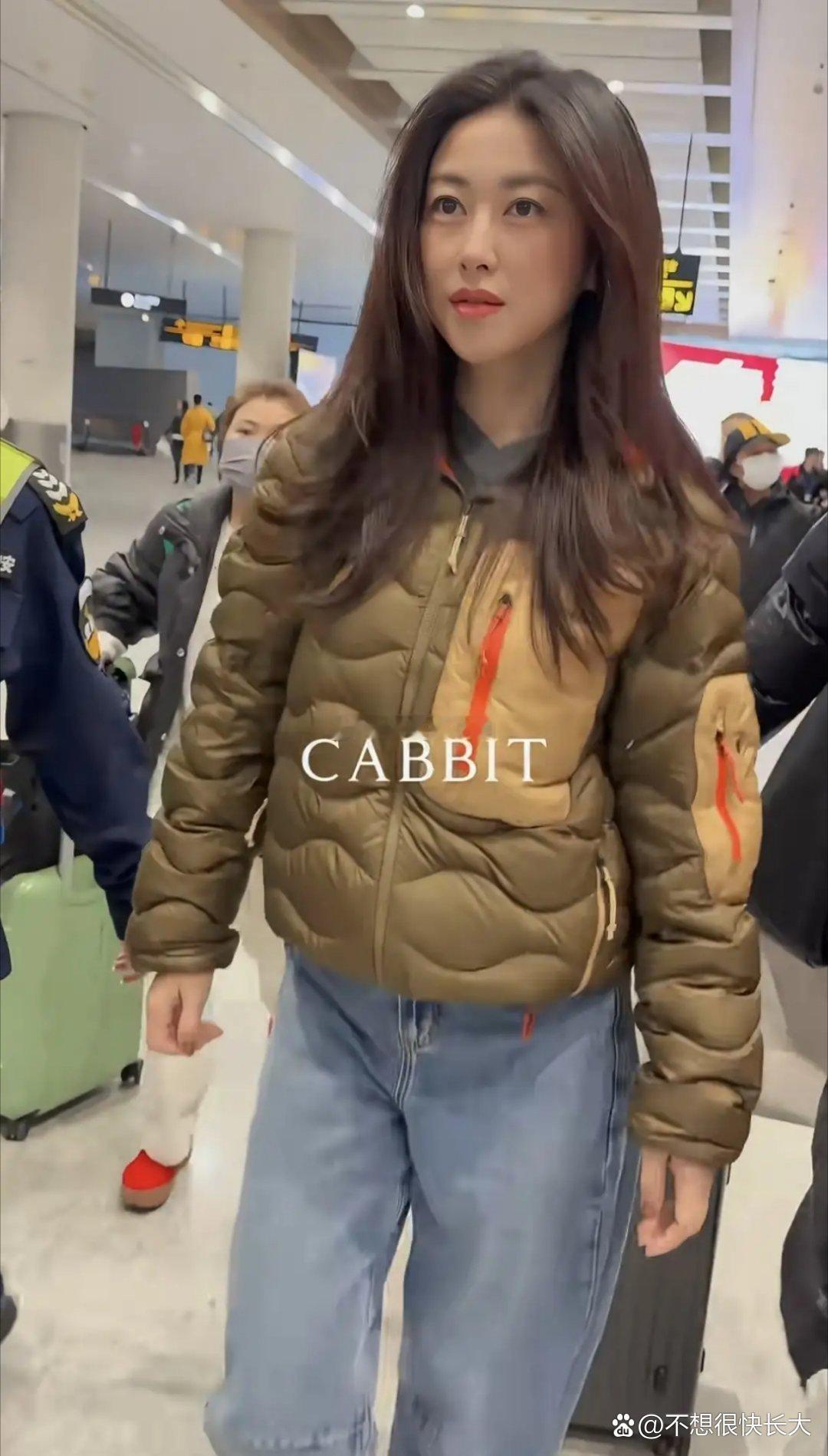 朱珠机场被偶遇,吐司羽绒服配牛仔裤,简约穿搭难掩好气质,果然人美穿什么都好看,亮眼又吸睛。
