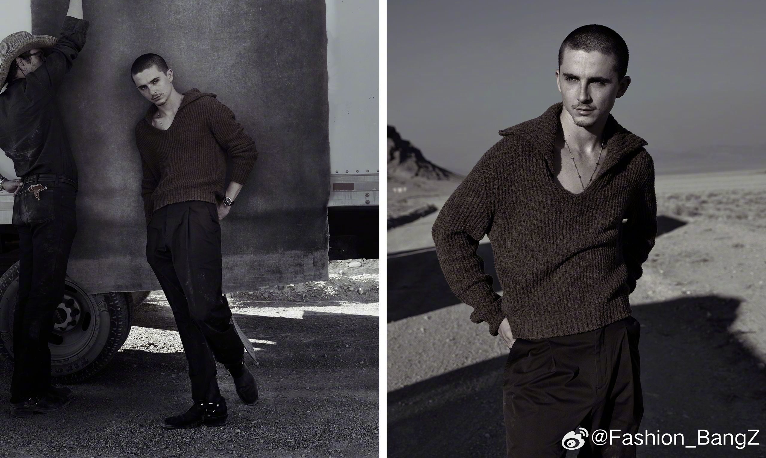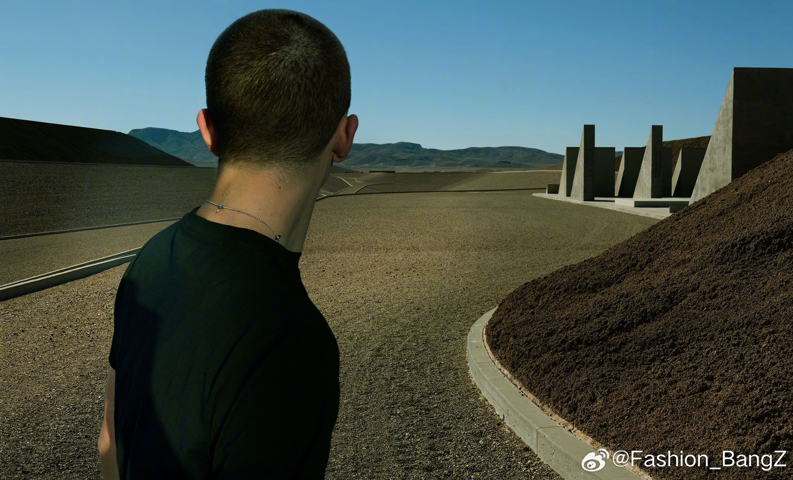 大片由大师 Annie Leibovitz 掌镜,理念是“宇宙视角下的孤独与宏大”。拍摄选址于艺术家 Michael Heizer 位于内华达州沙漠的巨型大地艺术作品 (1970–2022)。这片广袤、原始、几乎与世隔绝的荒漠,与 Chalamet 作为全球巨星的身份形成强烈对比——他仿佛宇宙中行走的旅人,这呼应了他主演的 中保罗·厄崔迪的救世主形象,亦暗示了他在巨大名利世界下的内心——宏大、疏离但充满力量。