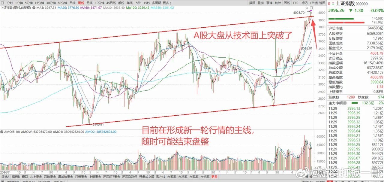 综上所述,目前大盘的表现已经非常明朗,随着震荡洗盘,上证指数易涨难跌,指数很难跌下去。沪指技术走势从各个方面来说,已经形成了趋势突破。也许大盘还要在4000点附近继续洗盘一下,但是新一轮的突破行情随时可能开始,当下最重要的是确定后续行情的主线方向。