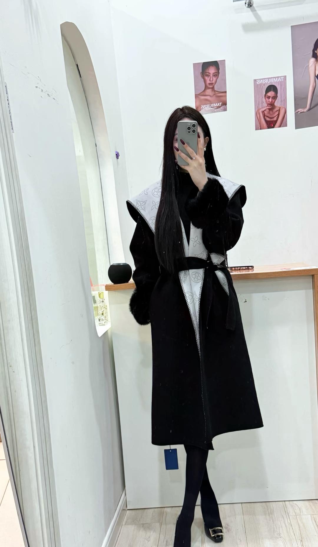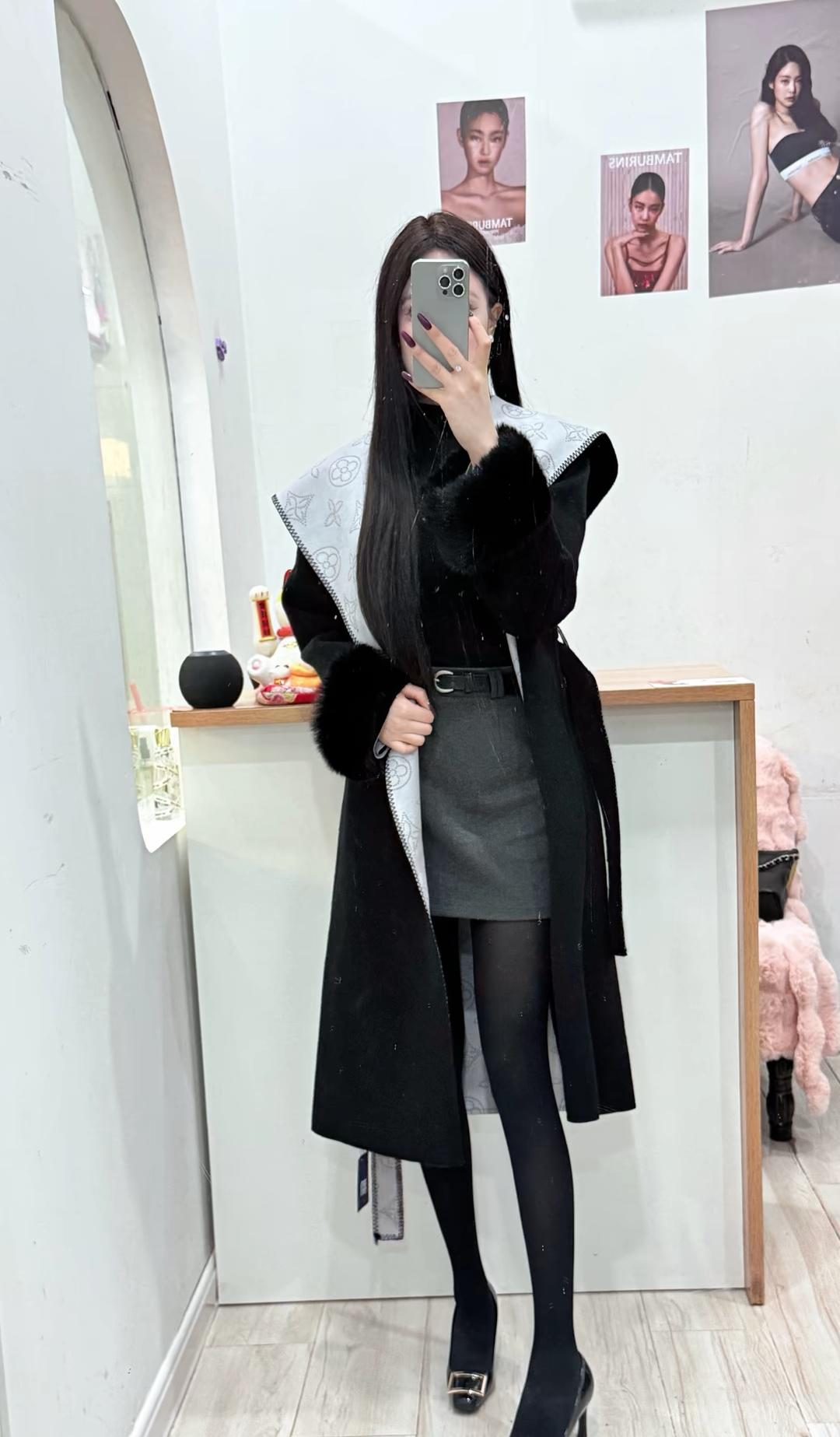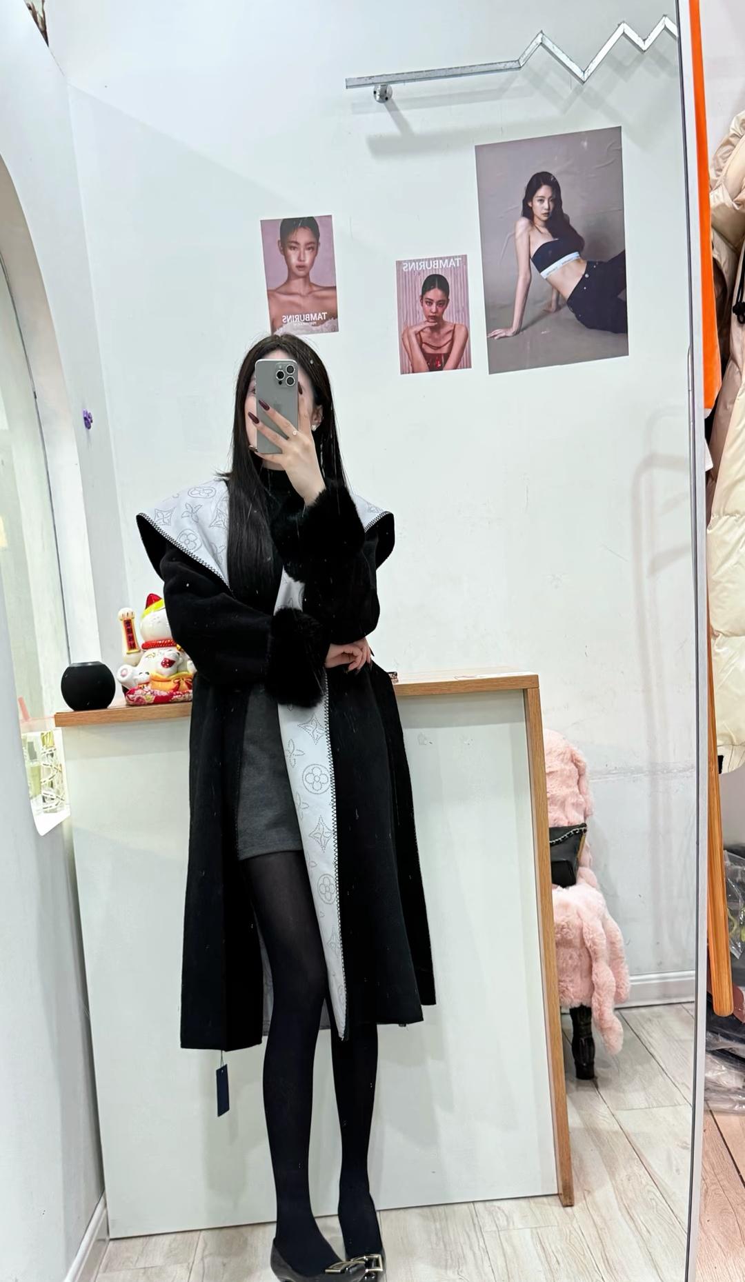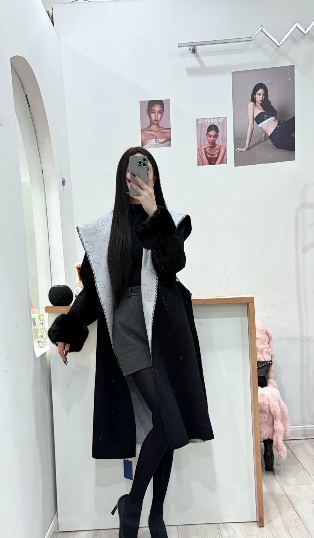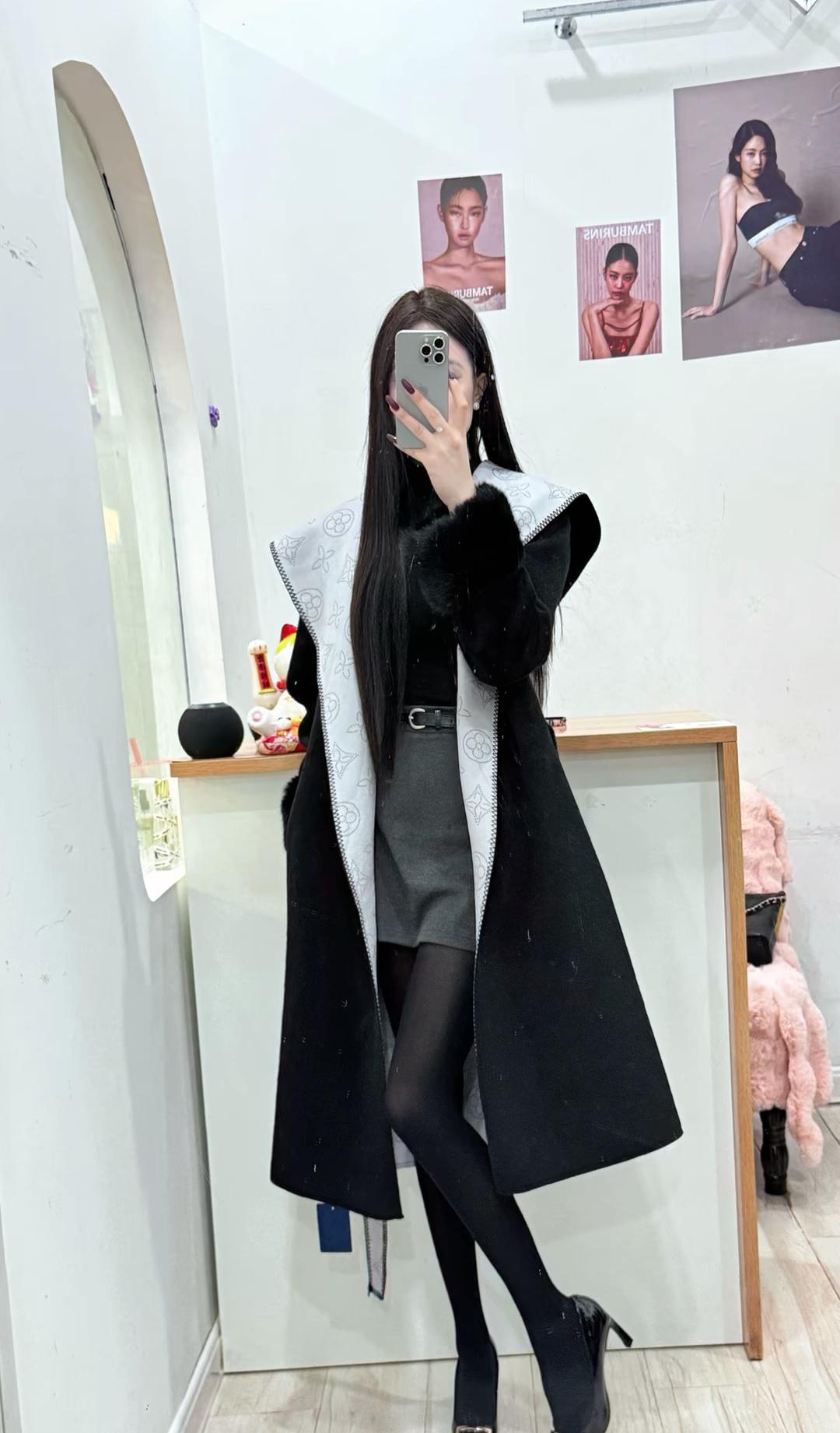 黑白撞色大衣搭配黑色短裙,简约而不失优雅,尽显都市女性魅力!