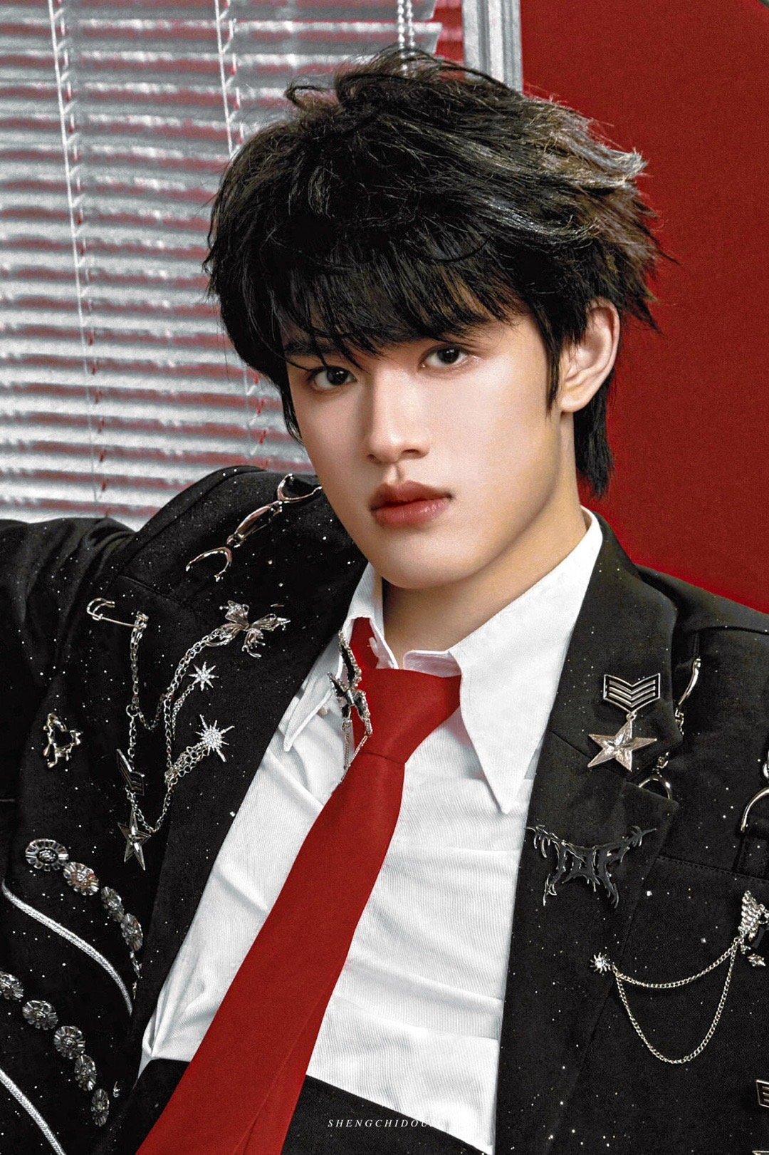 张极怎么帅成这样了 丝绸衬衫染着鎏金光影,宝石领夹锁住所有视线!台步踏出带电的气场,连汗珠都像精心设计的舞台特效。强烈要求帅哥造型提前报备![跪了] 张极闪钻西装配红领带