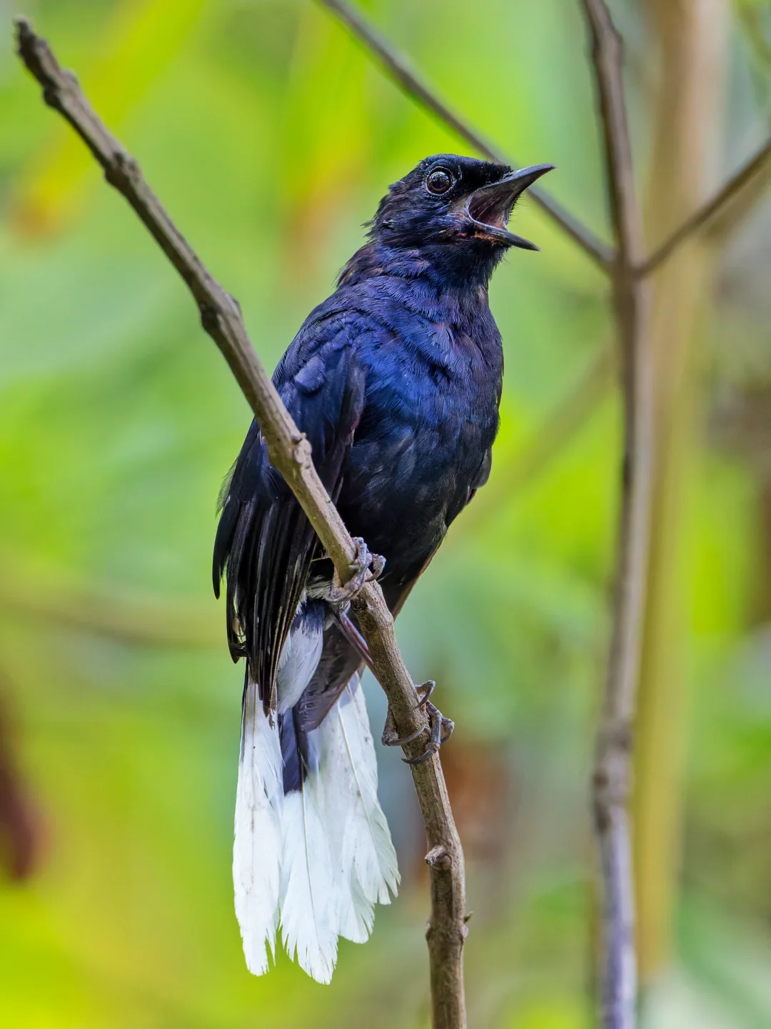 原创拍摄 白臀鹊鸲,White-vented Shama,雀形目鹟科鹊鸲属。巴拉望特有种。 见过鹊鸲,见过白腰鹊鸲,也拍过特别的白眉鹊鸲,这次又遇上了白屁股的白臀鹊鸲:黑色羽衣+白色臀部和尾羽。