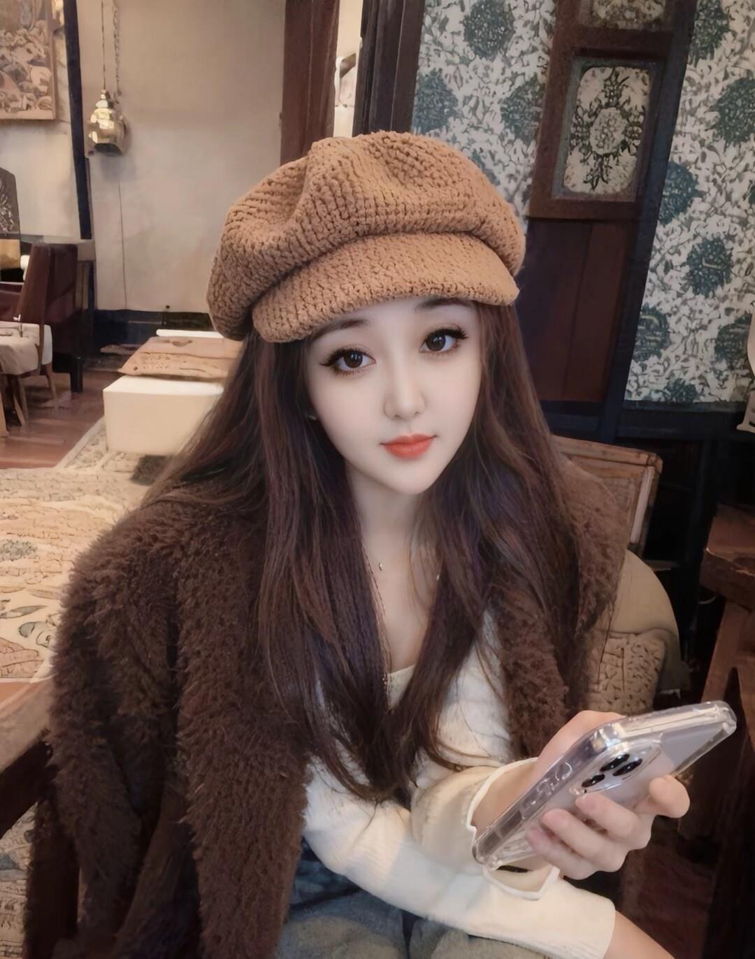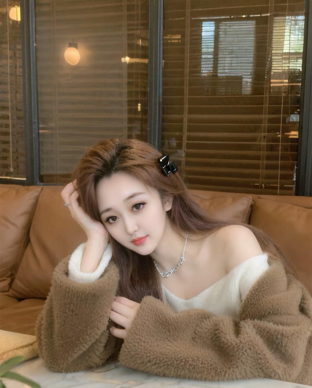温柔甜美的自拍,白色毛衣搭配黑色裤子,简约又时尚!💕✨
