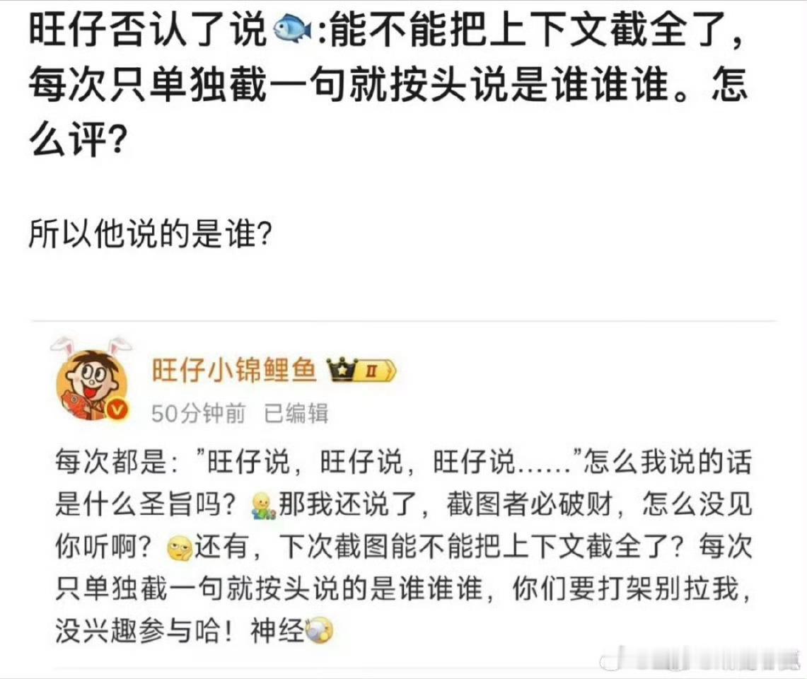 旺仔说他说的不是虞书欣没事了,别人截图没截全