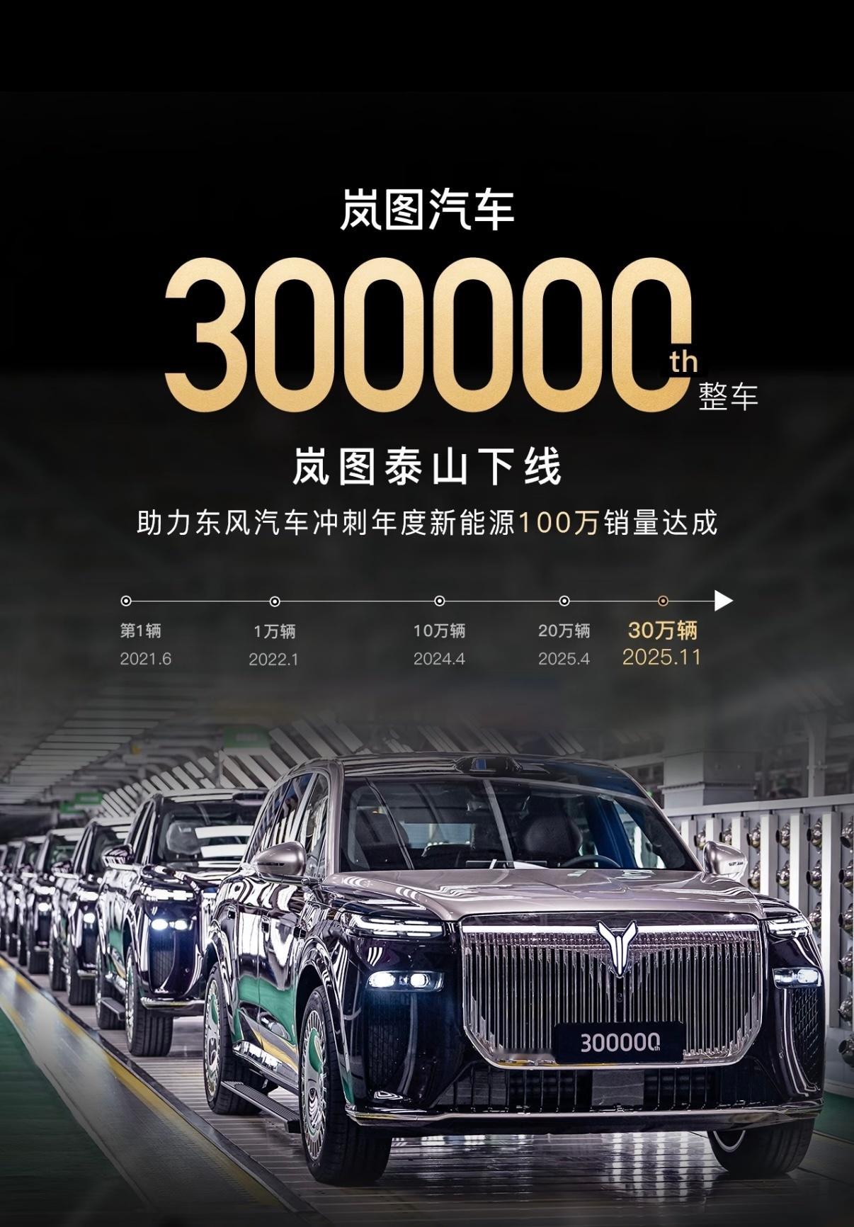 祝贺岚图汽车第30万辆整车下线,这个速度真的很快了,成为最快达成30万辆的央国企高端新能源品牌!