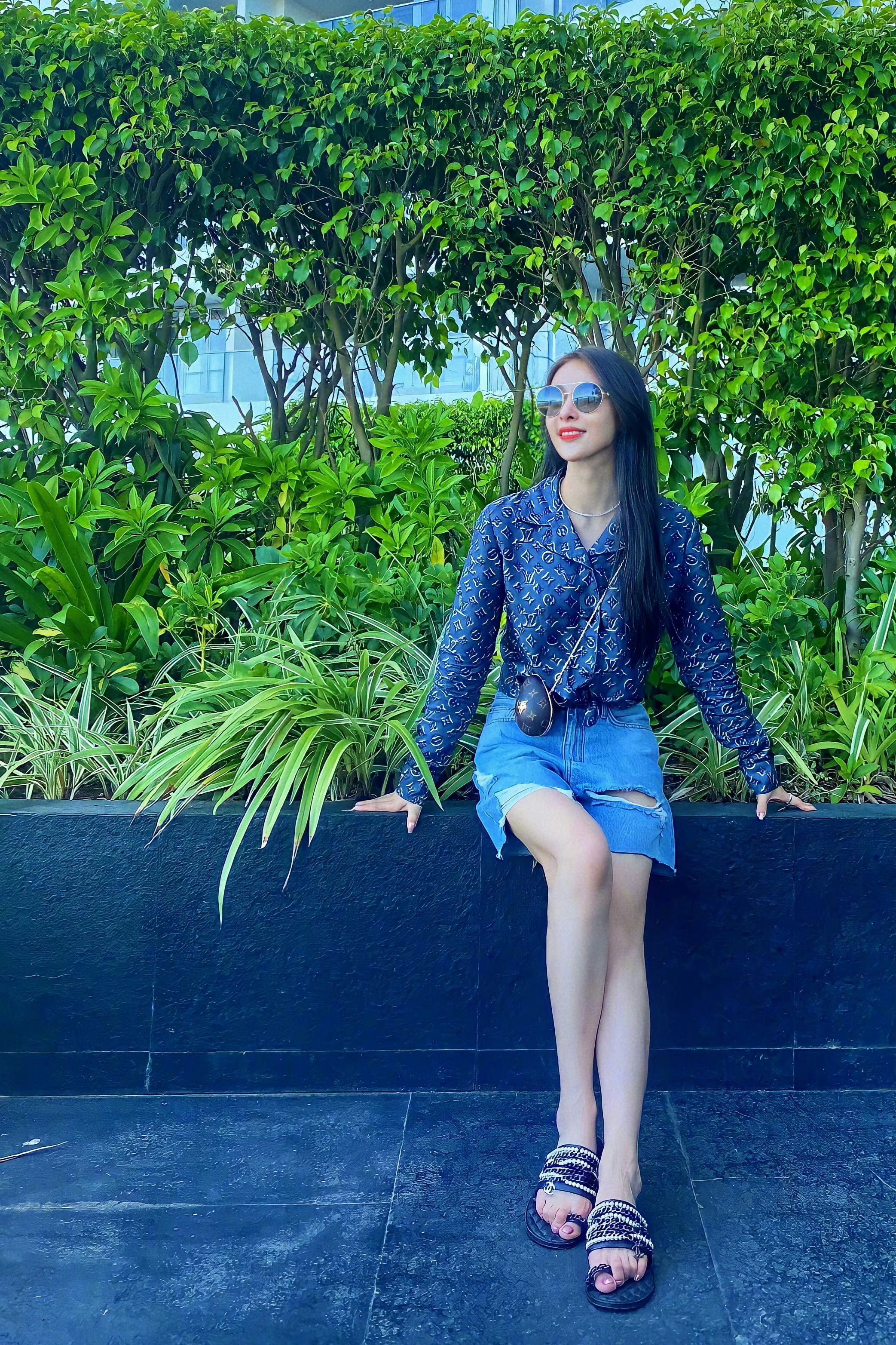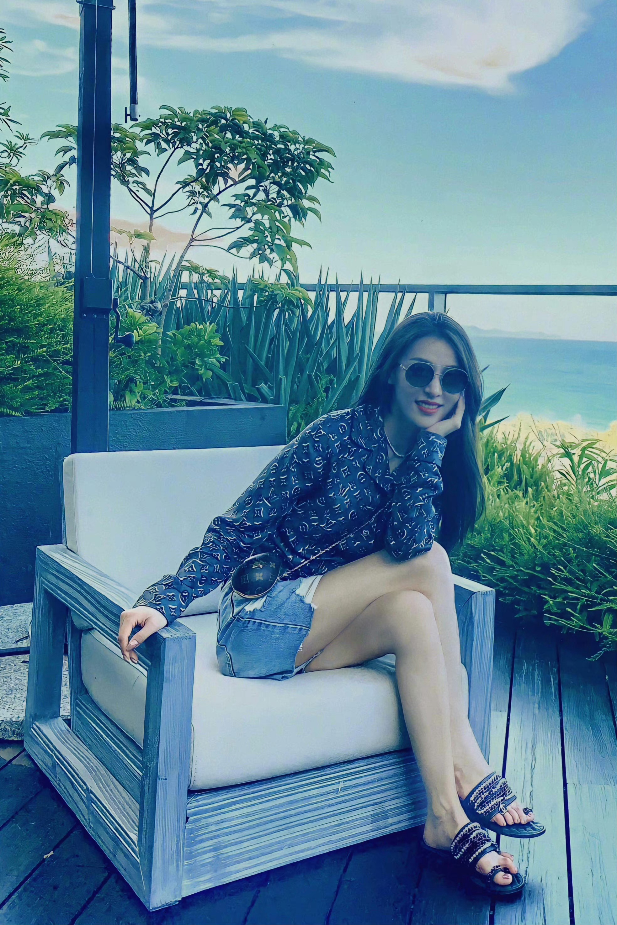 贾青长发墨镜,休闲随性的秋日私服穿搭