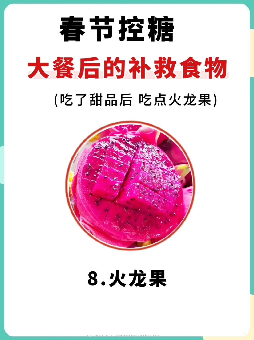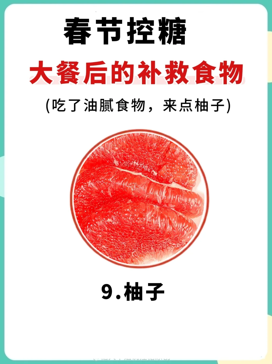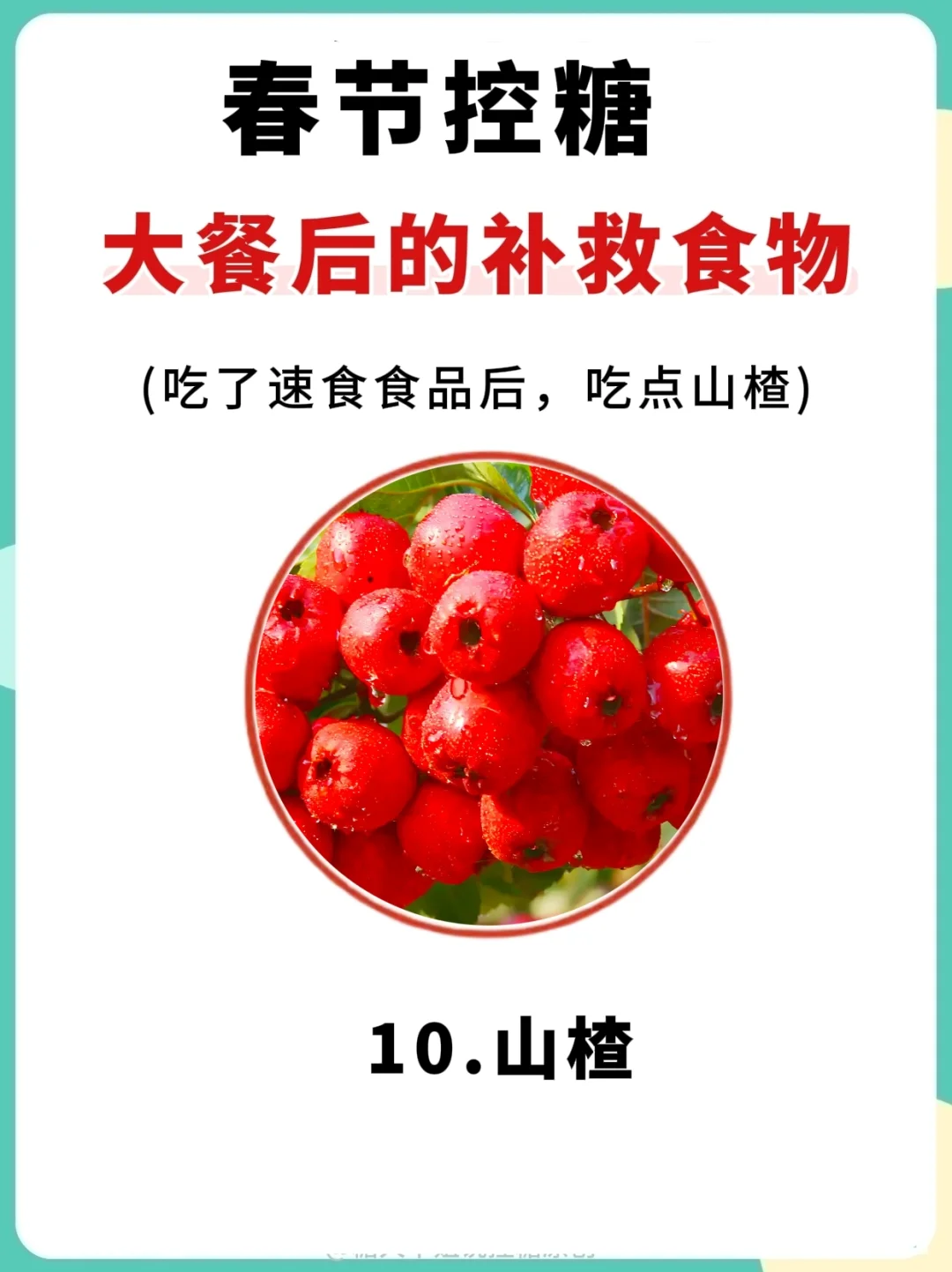 薯光伴你迎新春 控糖的家人们!谁懂啊!看着餐桌上的食物这不敢吃那不敢吃的心情😂 其实在正月1-2天时还是可以稍微满足一下自己的味蕾——放纵一两次,然后吃点可以补救的食物。过几天再慢慢控制一下,让血糖慢慢回落。 . 今天我必须给大家分享🔟大餐后的补救食物,建议贪嘴嘴的糖友们码住!随时👀👀补救一下。 如图1⃣∽🔟👆 . ⚠️请注意,以上内容纯属个人科普,仅供参考! ㊗️各位糖友们蛇年糖糖稳稳当当滴∽