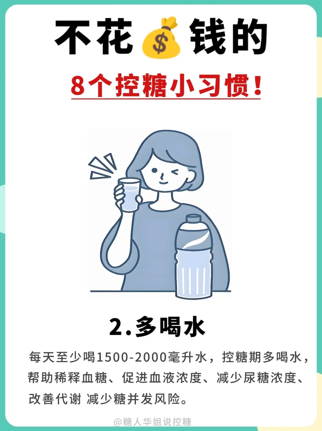 ∽建议:虽然喝水有助于控糖,但过量喝水也可能导致水中du,尤其是shen功能不全的情况下。