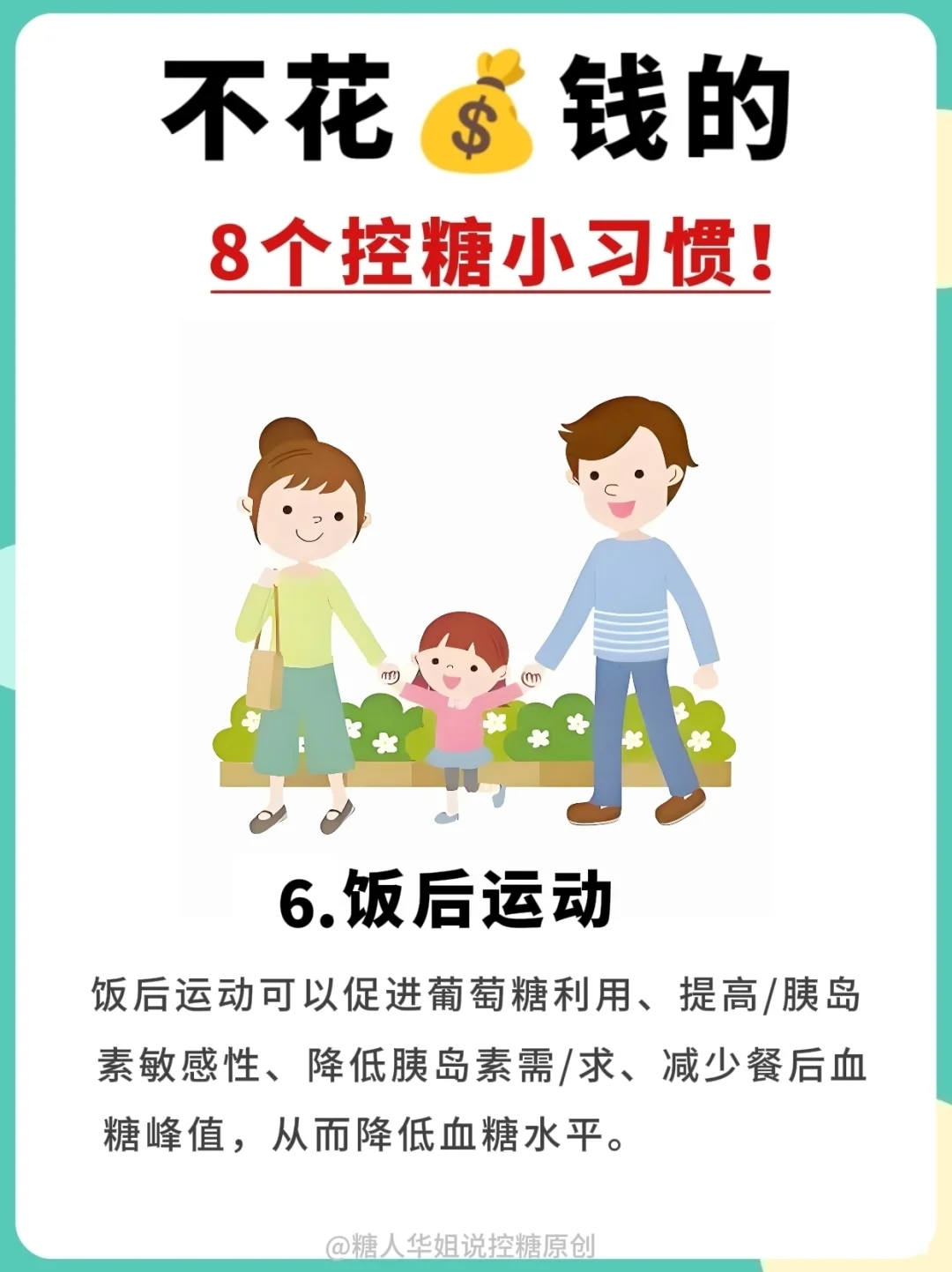 ∽建议:根据自己的爱好选择运动方式,容易坚持下去。饭后30-60分钟开始运动,每次运动30分钟左右,可以降低餐后血糖峰值❗️