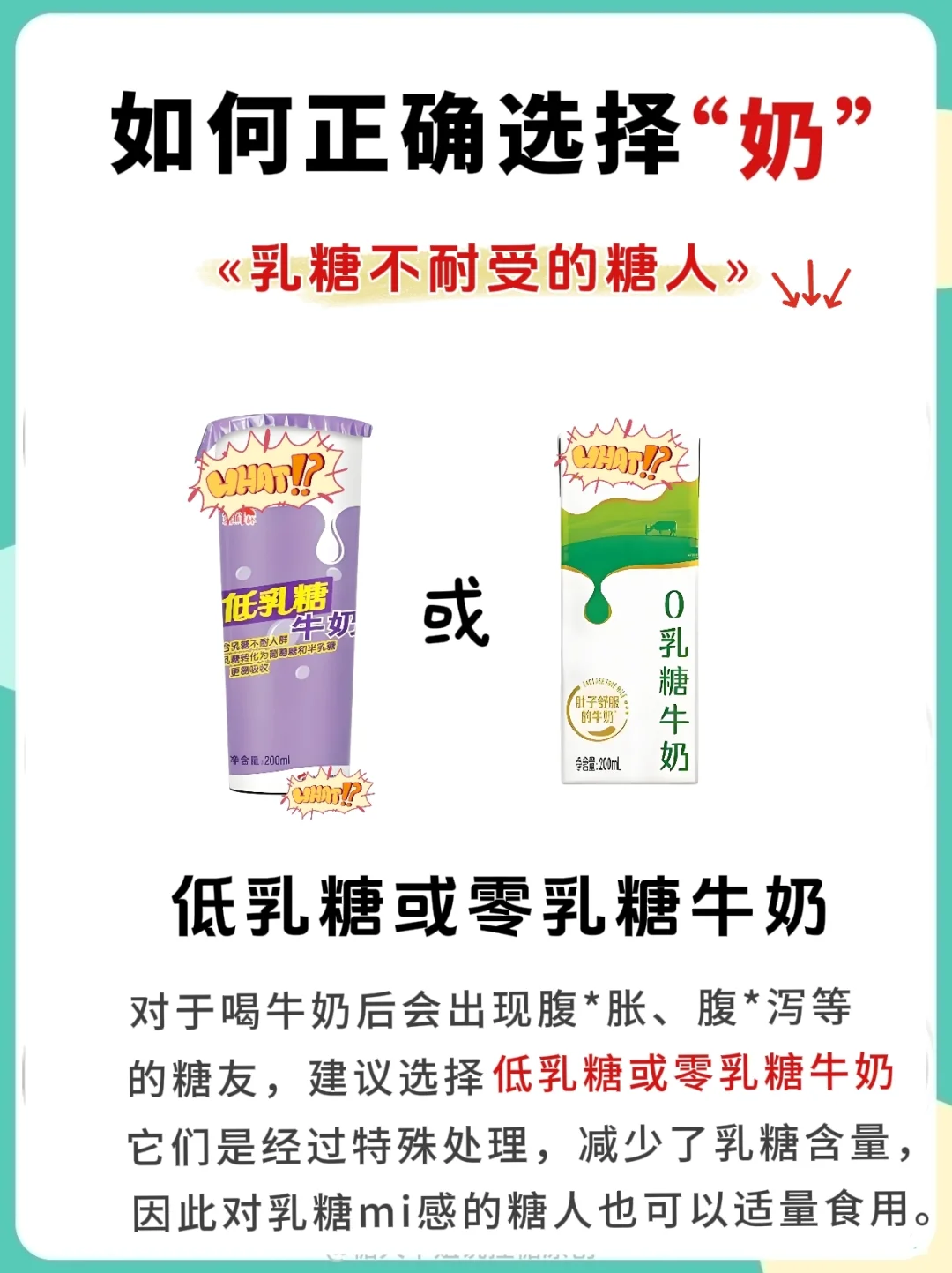 ✅这类糖友建议选择低乳糖或零乳糖牛奶。它们是经过特殊处理,乳糖含量被减少,可以适量食用。如图6⃣👆