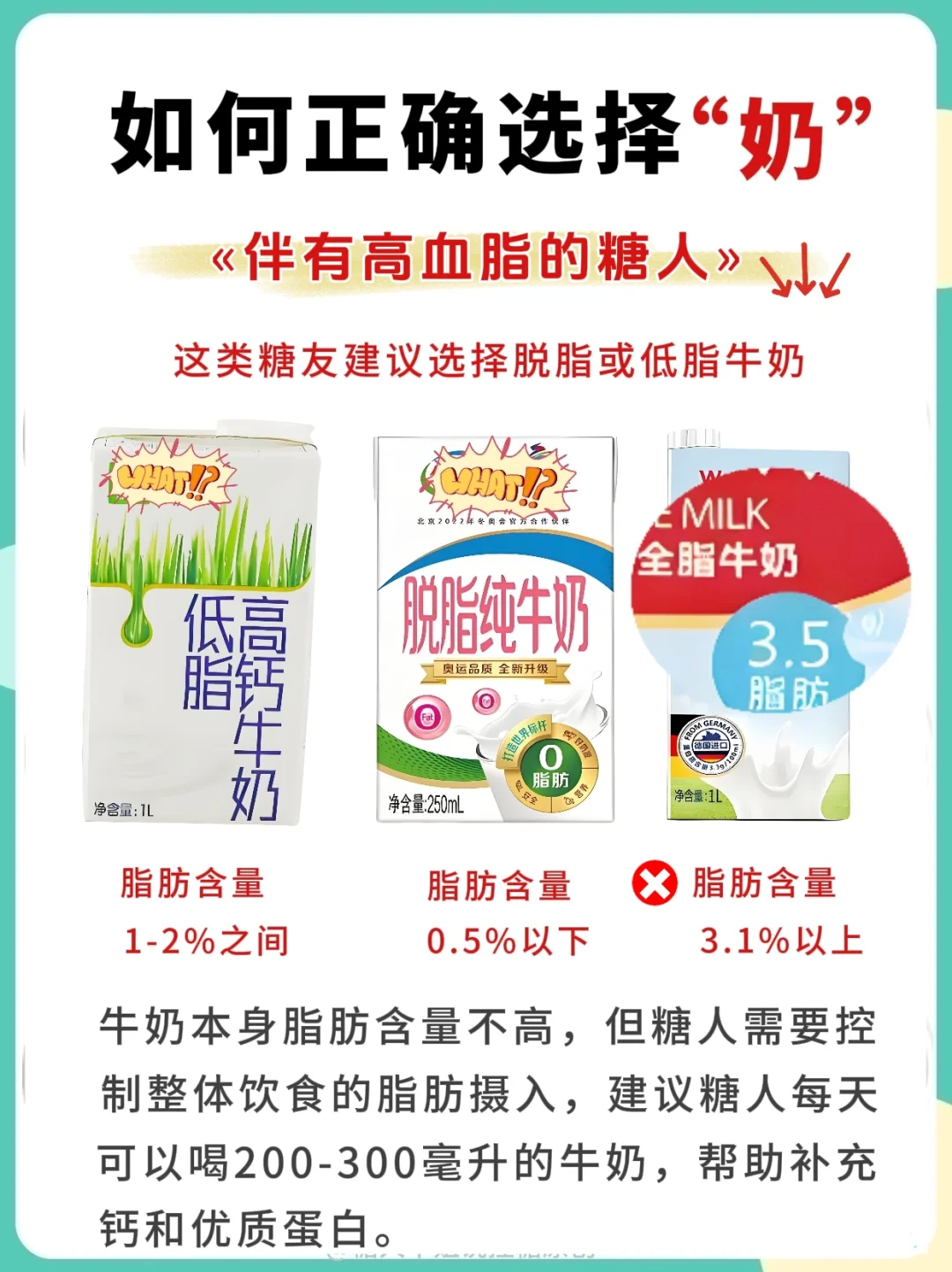 ✅这类糖友建议选择低脂或脱脂牛奶。如图5⃣👆