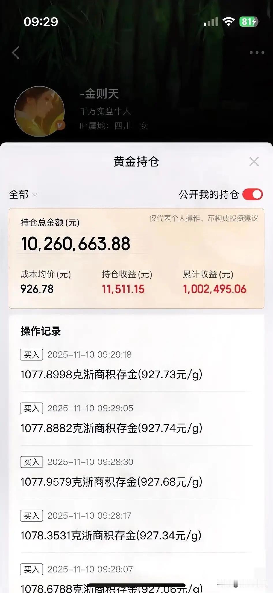 这是谁的模拟盘?一下子就干了一万多的收益。真厉害呀!多少咱是得有点。现在你会买实物还是虚拟黄金啊?实物要交税。虚拟的不用。 如果资金大,还是虚拟的比较合适。一涨一跌,就能看到正负的收益。很是客观。你对未来的走向持有什么样的态度?想不想来吃一口啊?