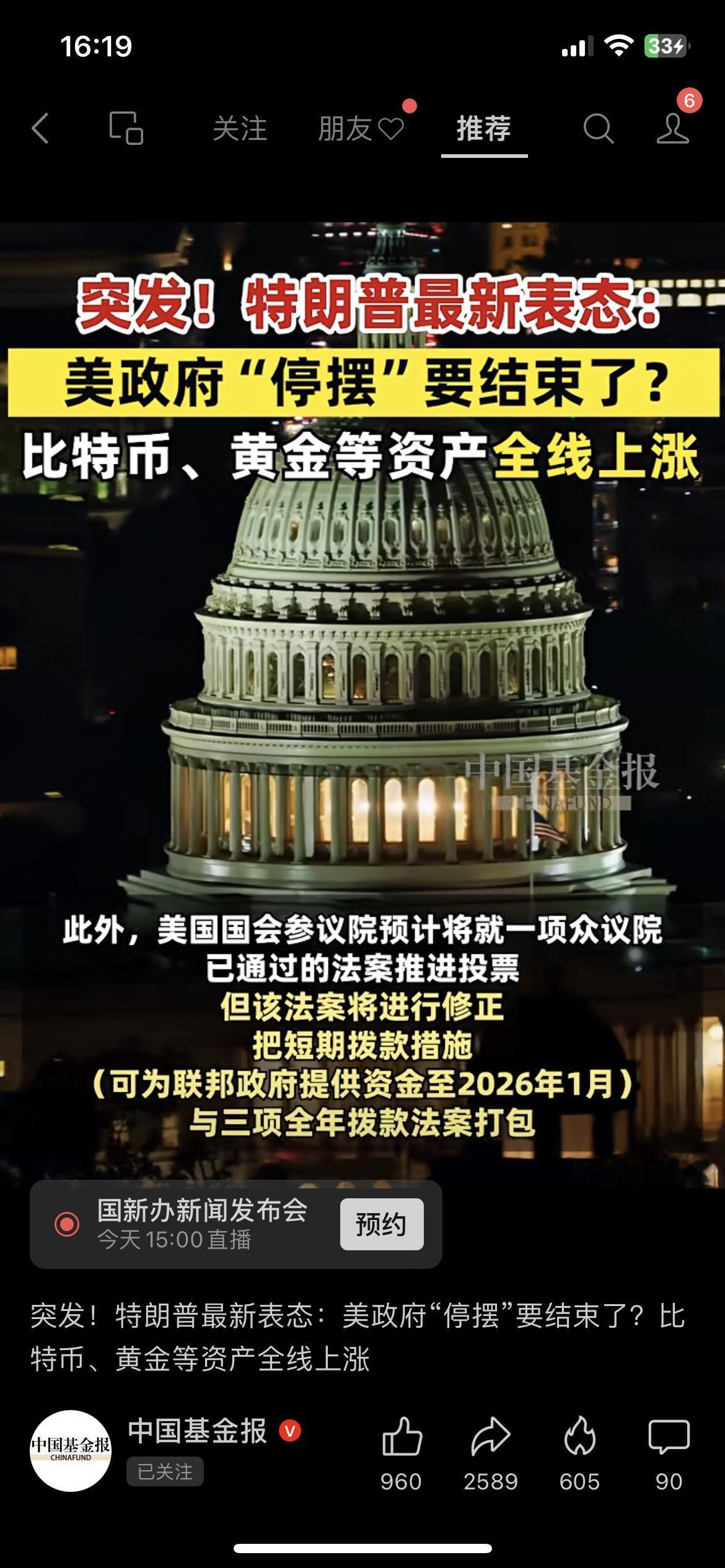 突发!特朗普松口,美政府停摆要破局,比特币黄金先涨了 美政府那摊子“停摆”的事儿,终于要松口了! 特朗普表态后,参议院要把“供到2026年1月的短期拨款”和全年法案打包投票修正——消息一出,比特币、黄金直接全线飘红,全球市场先稳了波情绪。 这波会不会带动美股和A股跟着暖一暖? 美政府停摆 全球资产走势
