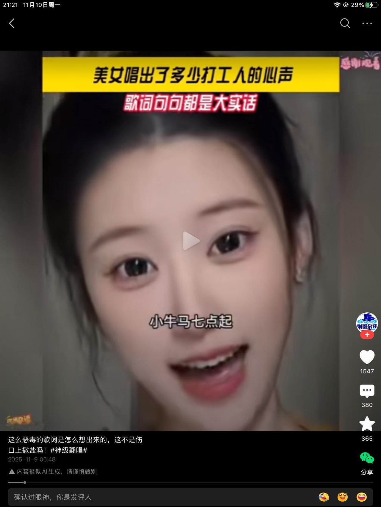 小牛马,七点起?姑娘,你说的不对,小牛马,是七点出发,七点半到。七点起,太阳照屁股了!不晚了吗?哈哈!用葫芦娃的调调唱出来。笑不活儿了! 牛马之歌!哎呦,不容易,混上歌了!歌颂劳动者之歌。歌颂牛马之歌。一月工资3100,你是为了押韵吧!还给我多一百。谢谢啊!高兴,真高兴!哪怕是个饼呢?这么甜!吃了啊!吃了!什么吃不下,都是不饿。饿了,多大的饼也吃得下。哈哈。