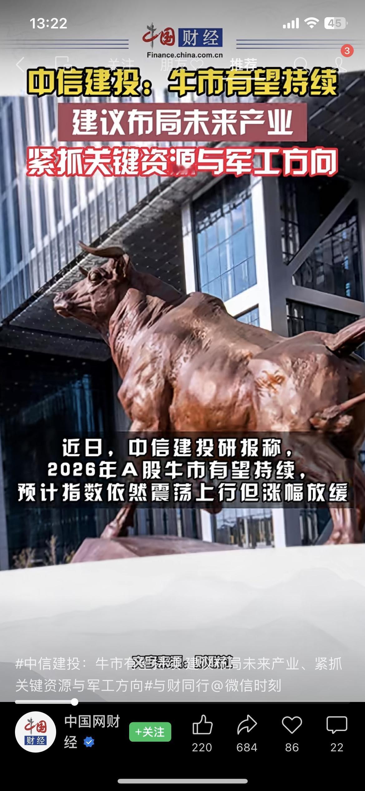 中信建投刚放话:2026年A股还能涨!现在布局这几个方向稳了》 中信建投最新研报直接给了颗定心丸:2026年A股牛市能接着走,指数会震荡往上,但涨得没那么疯了 划重点: ✅ 优先搞“未来产业”:新能源、军工、计算机这些; ✅ 盯着“关键资源”:科技板块可能阶段性回调,资源品要接棒成新主线; 年底想布局的,这方向这不就明明白白了?你手里有这些方向的票吗? 中信建投研报 A股布局