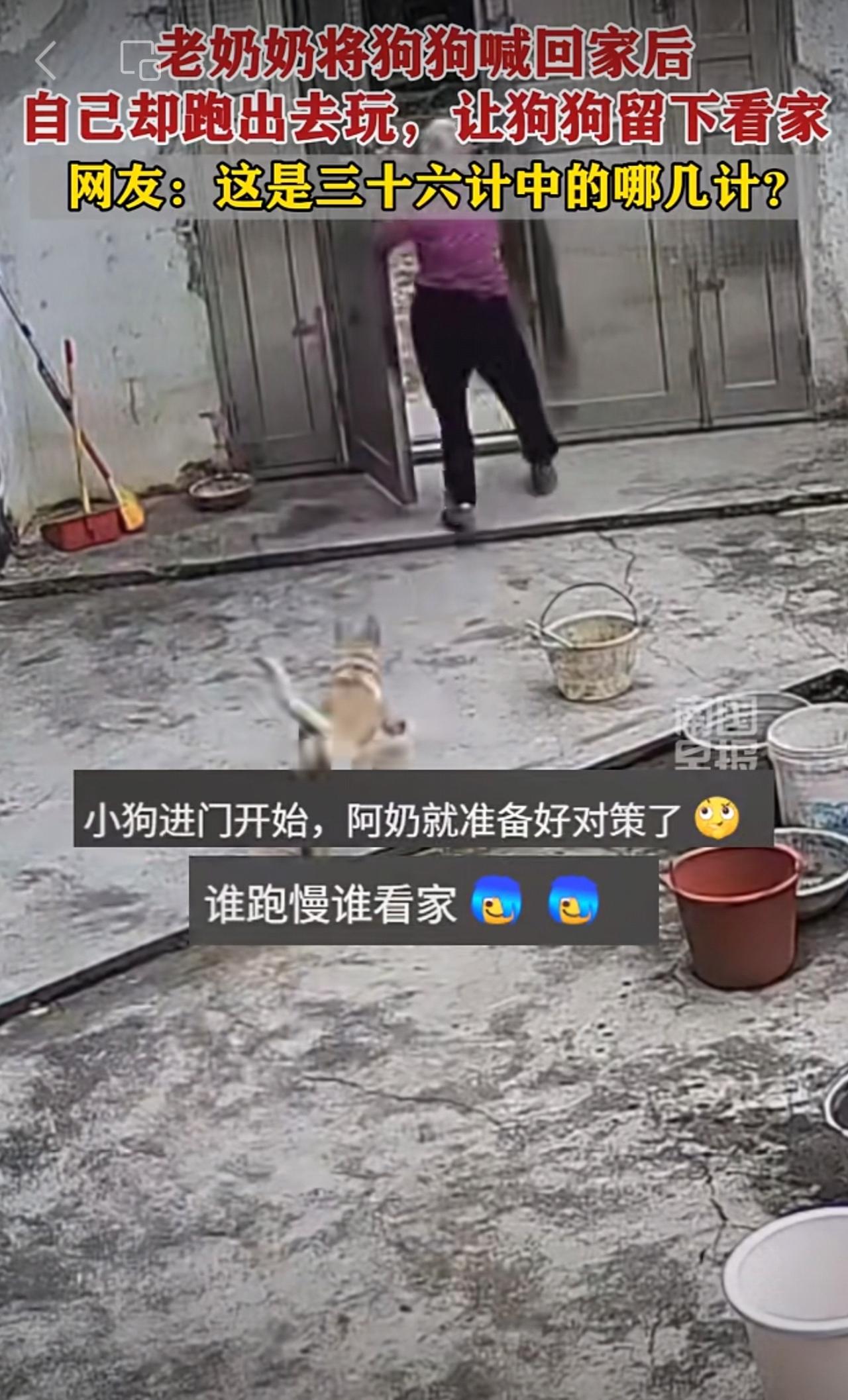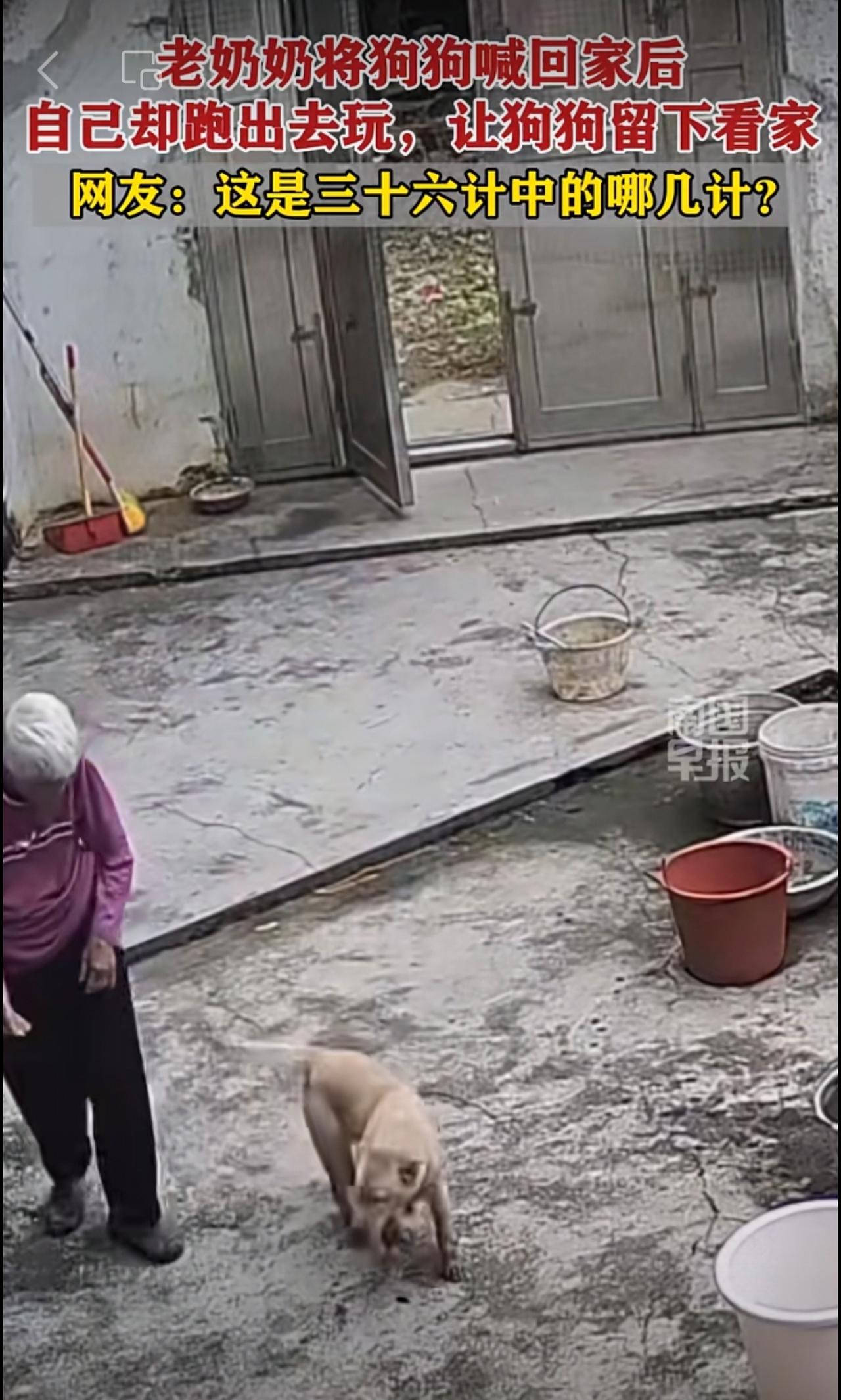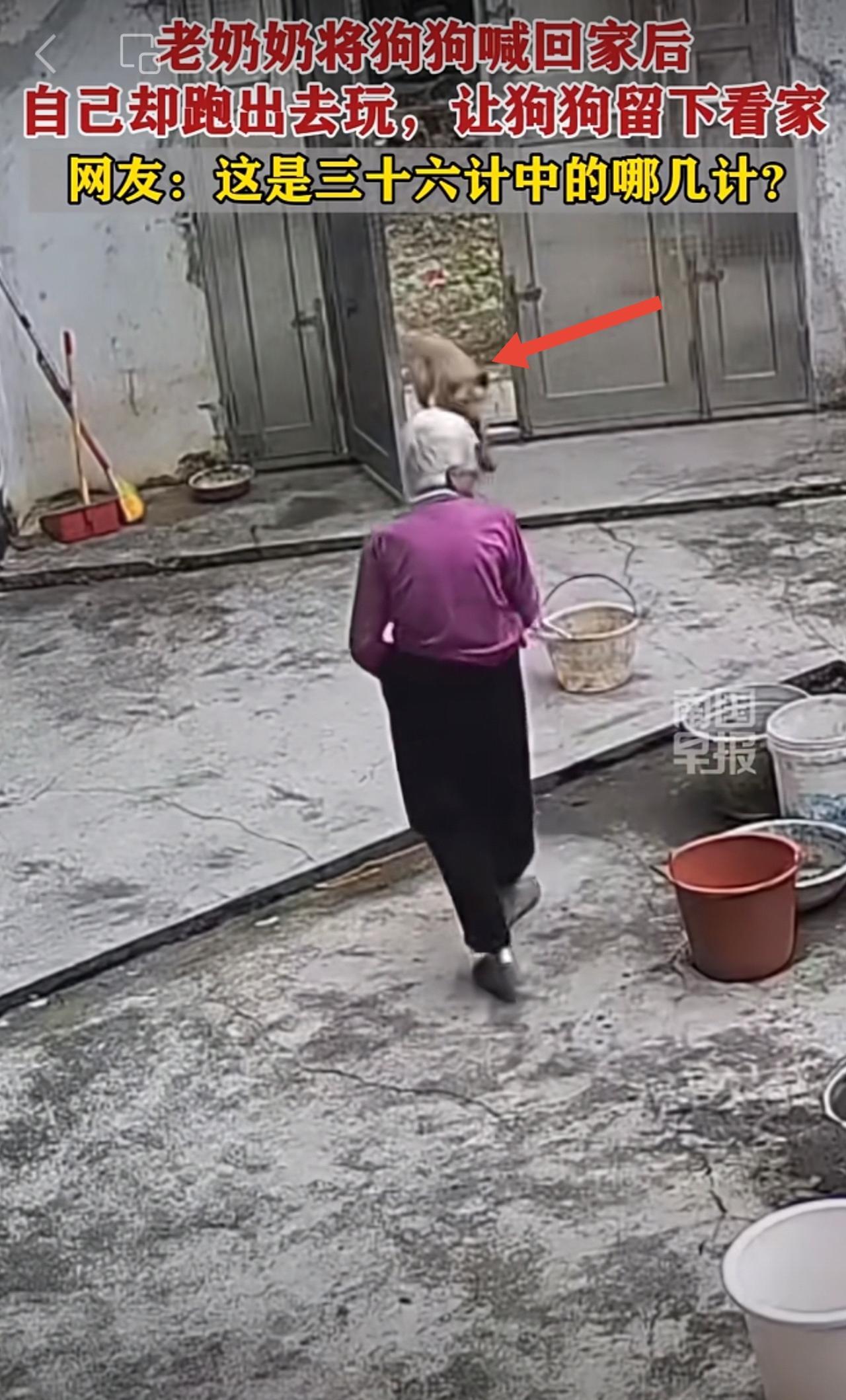 老奶奶将狗狗喊回家后,自己却跑出去玩,让狗狗留下看家。网友:这是三十六计中的哪几计?趣闻 狗狗 看家