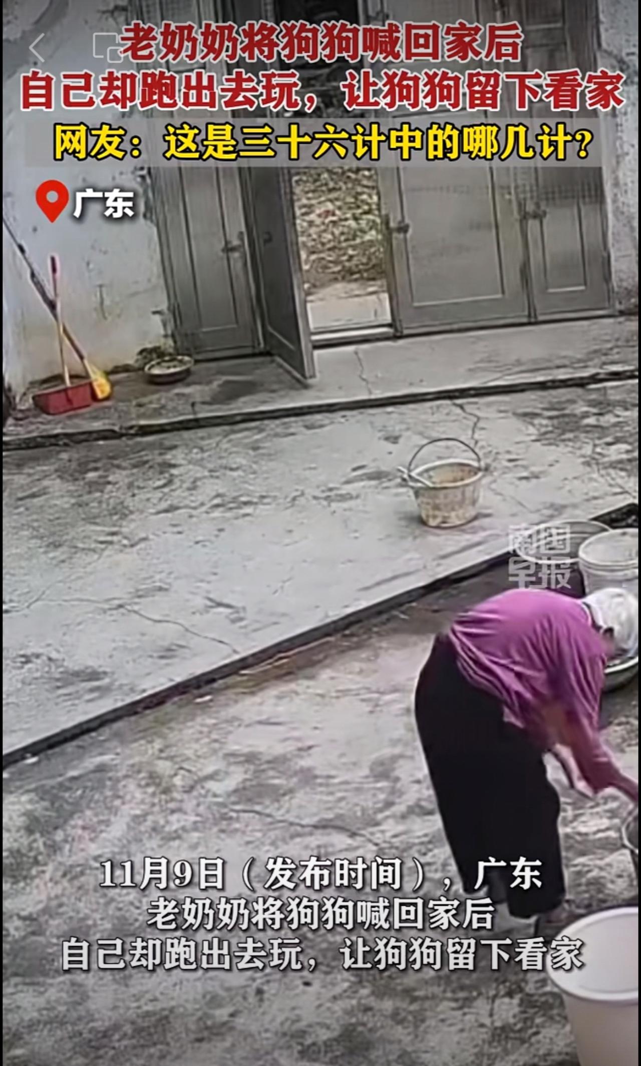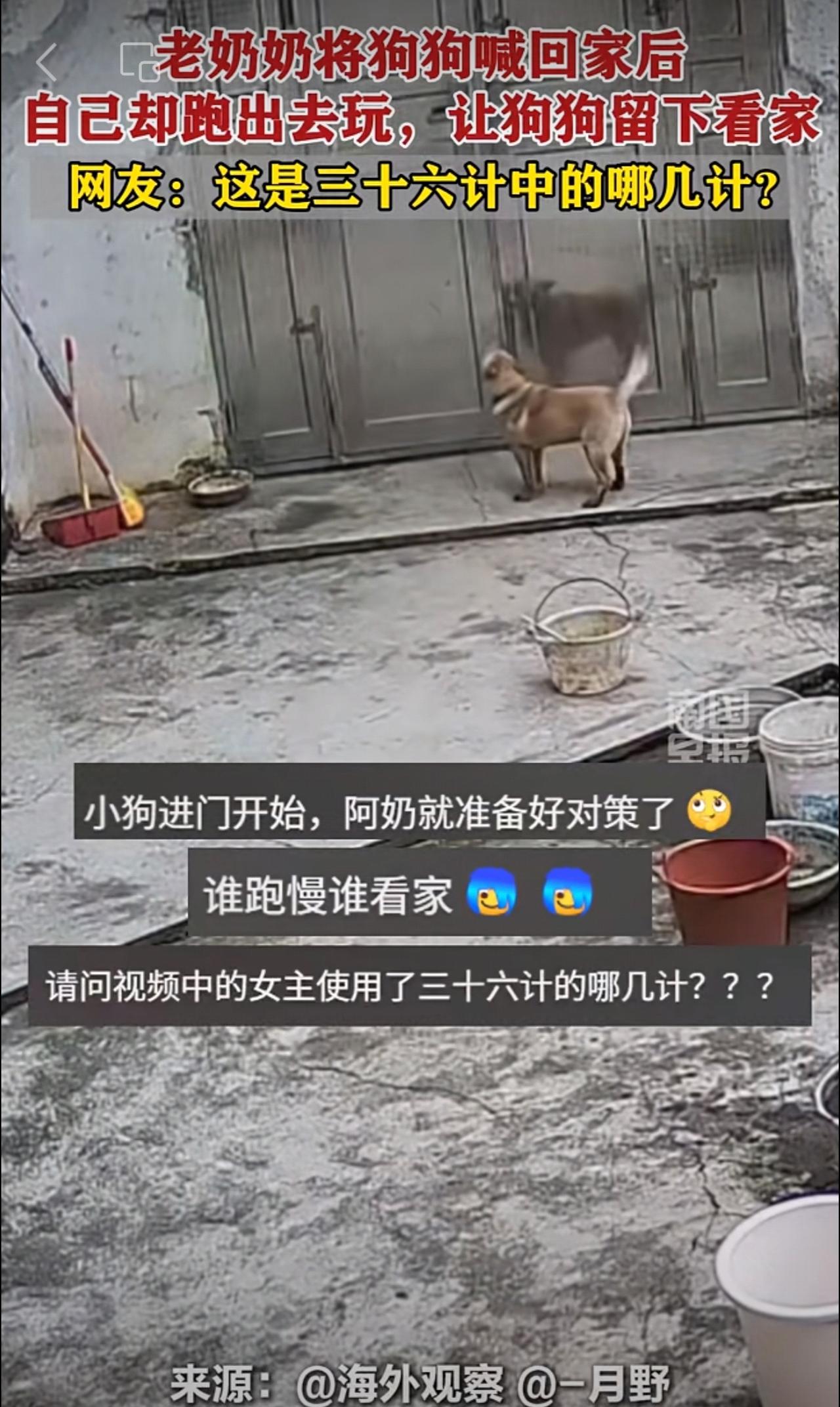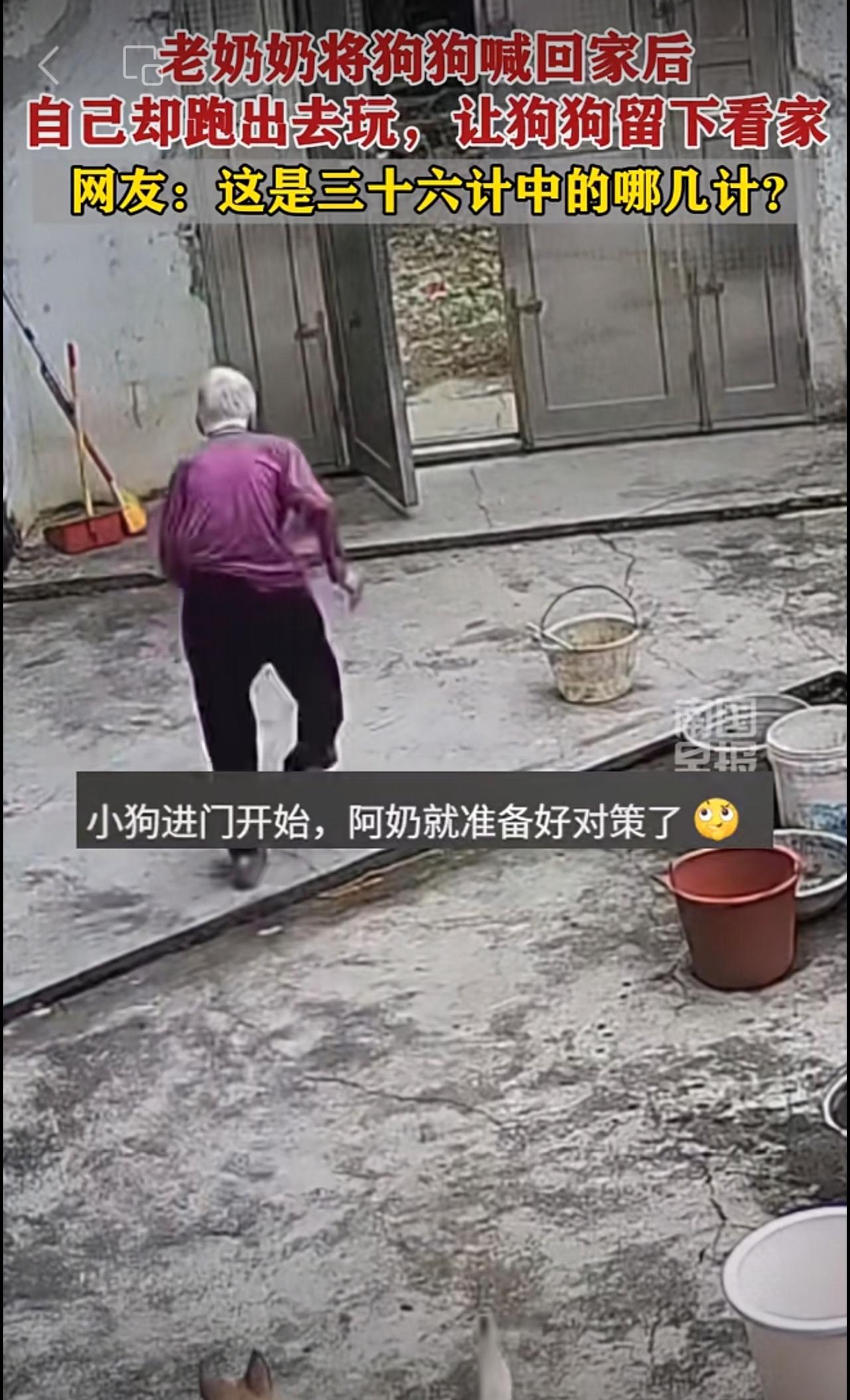 老奶奶将狗狗喊回家后,自己却跑出去玩,让狗狗留下看家。网友:这是三十六计中的哪几计?趣闻 狗狗 看家
