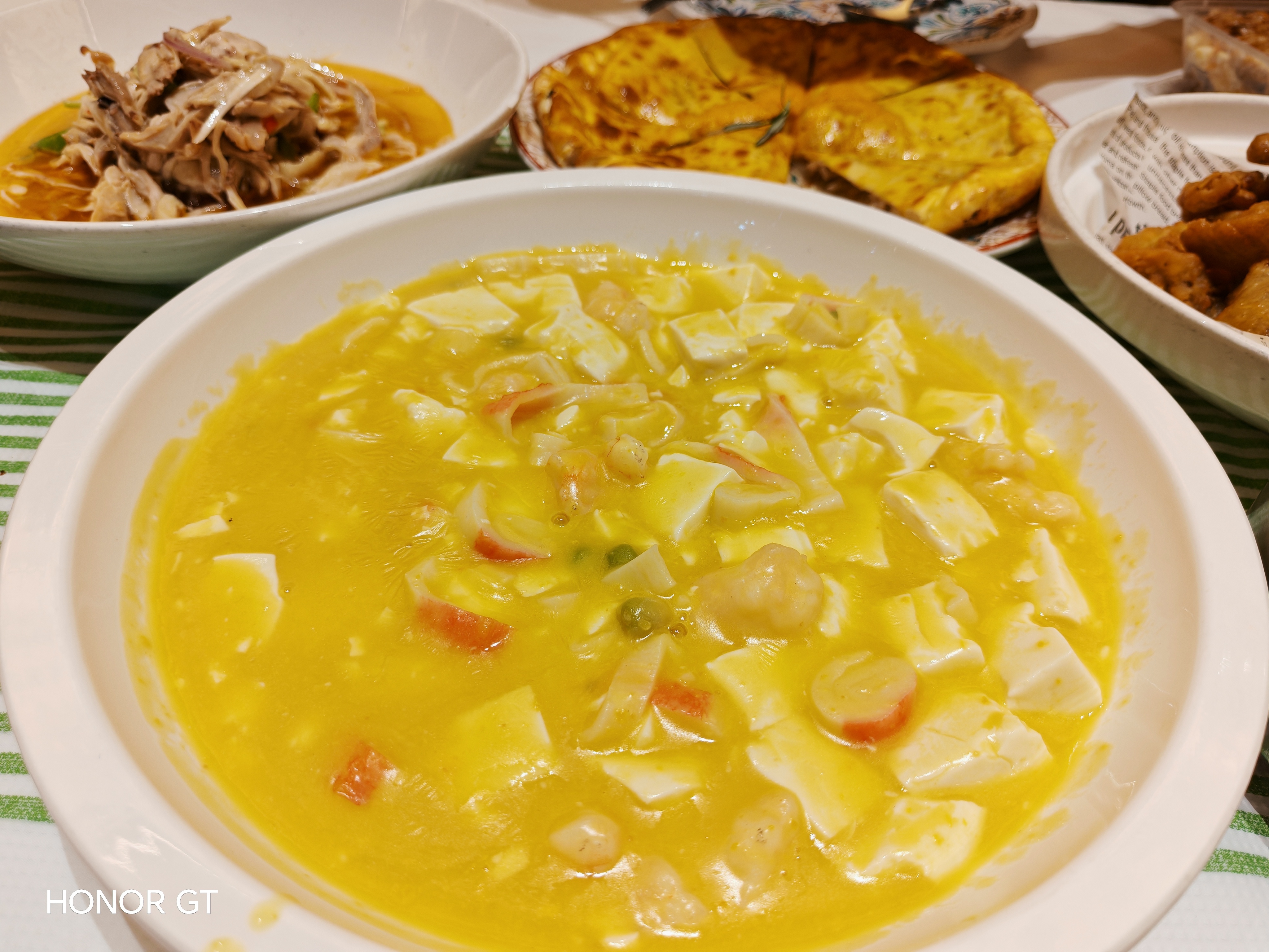 氛围可以环境可以餐具🍽可以味道口感一般目前吃到的蟹黄豆腐“辣得叫”家的