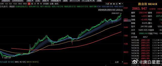 于此同时,银行也在持续反弹,尤其是四大行反弹的力度更大,农行和工行都创出了新高。第二,微盘股指数也创出了新高。