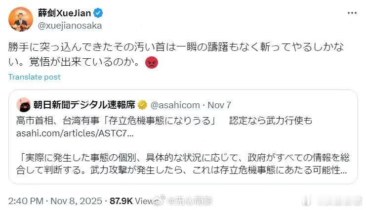 高市早苗口出狂言将大陆收台与日本存亡挂钩,日本右翼又在历史悬崖边“蹦迪”