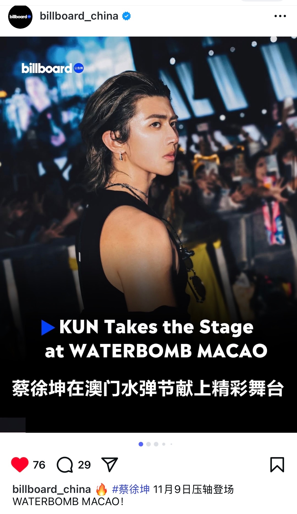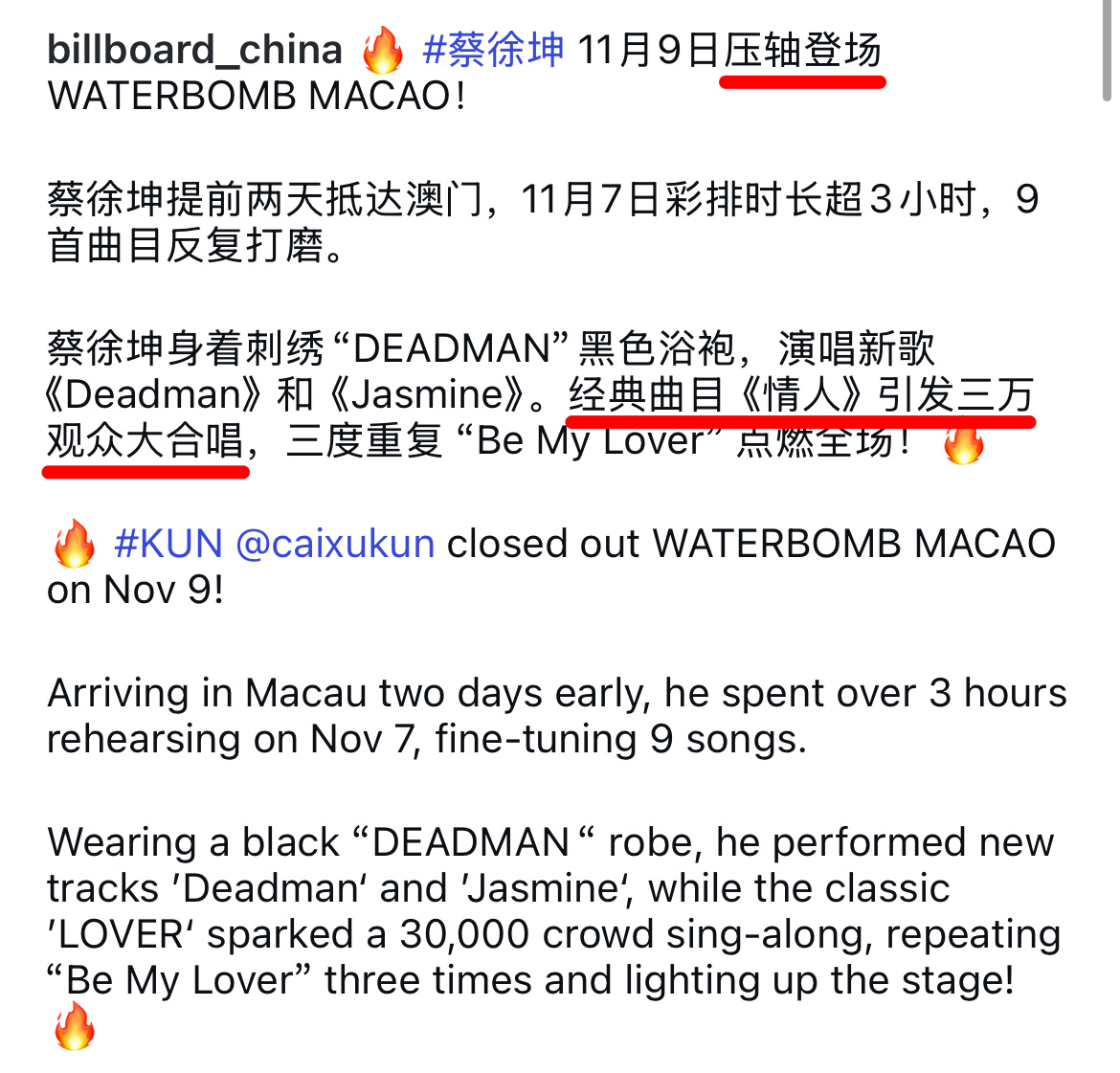Billboard官方认证‼️澳门水弹音乐节蔡徐坤压轴登场 爆曲《情人》引发三万人大合唱[666]号召力恐怖如斯🔥🔥
