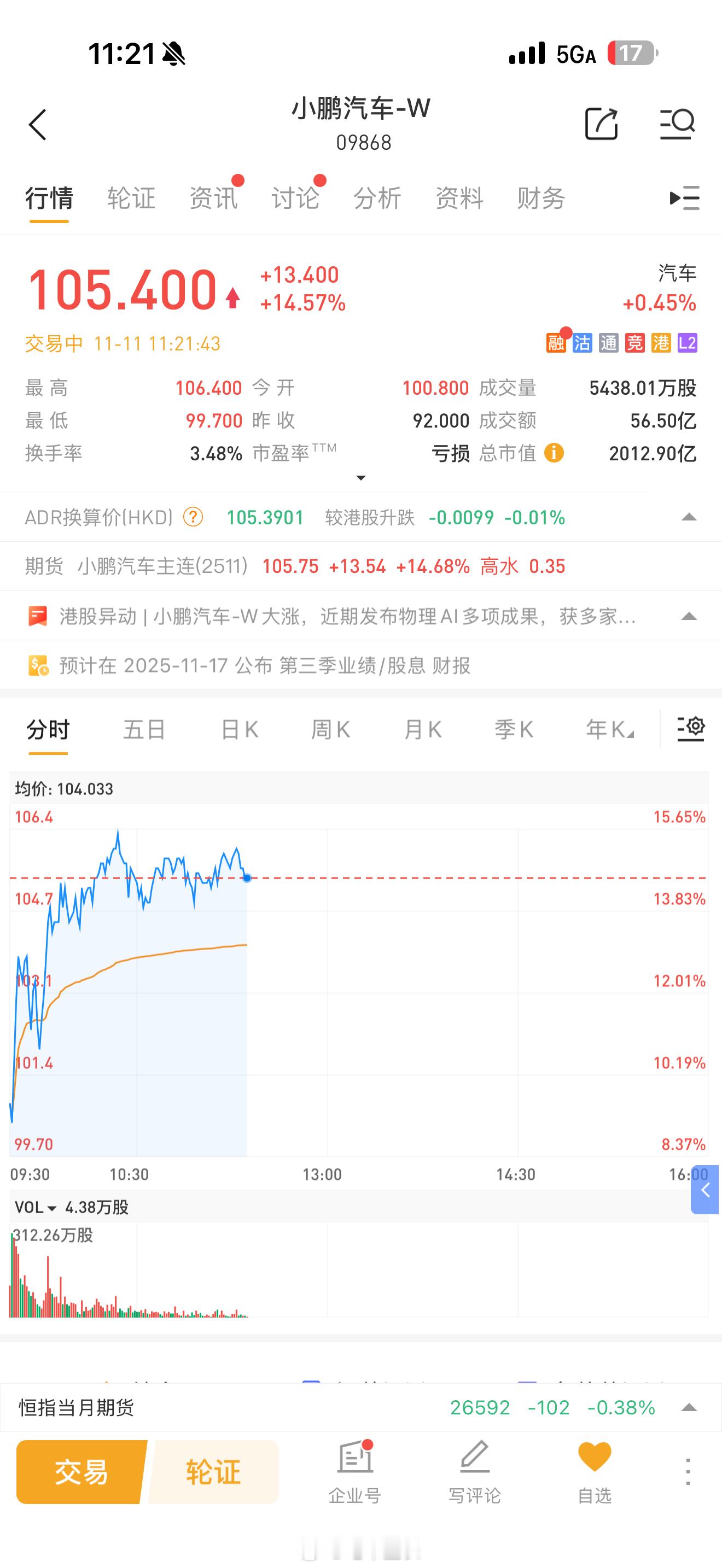 小鹏真的重新破百了,我的成本是81港币,现价105,兄弟们卖还是不卖?