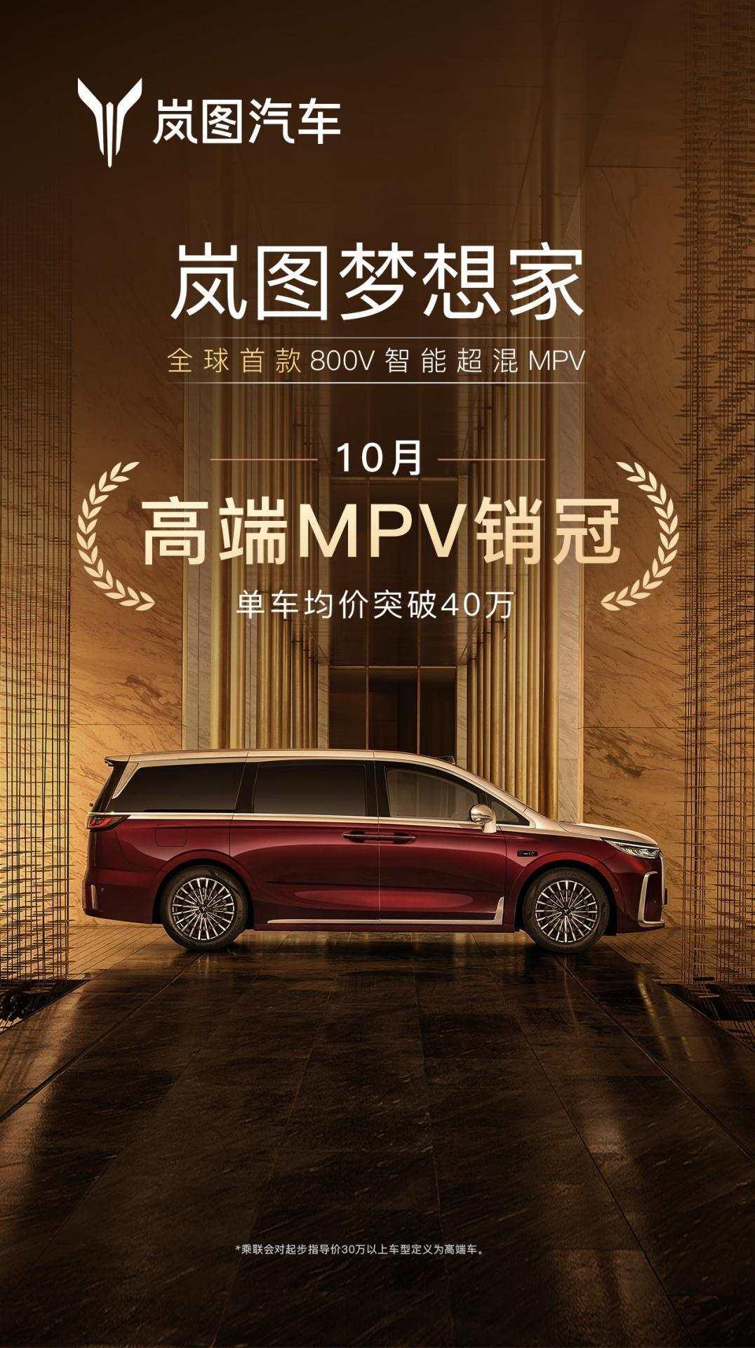 作为全球首款800V智能超混MPV, 2026款岚图梦想家凭借350公里纯电续航和华为乾崑智驾ADS 4、鸿蒙座舱5、智能后轮转向等领先科技,实现三电、豪华、智能的全面进阶,上市18小时大定破1万台,乾崑Ultra版订单占比超50%,单车均价突破40万元,成为高端MPV市场的“现象级”爆款,更是成功引领中国品牌实现了豪华车市场的历史性突破。 巅峰之上,再创豪华。首款新时代旗舰四座MPV岚图梦想家山河将于11月21日广州车展正式上市。作为首款搭载华为乾崑智驾 ADS 4的旗舰四座MPV,岚图梦想家山河将引领四座MPV进入新尊崇、新舒适、新智能、新安全的全新时代。