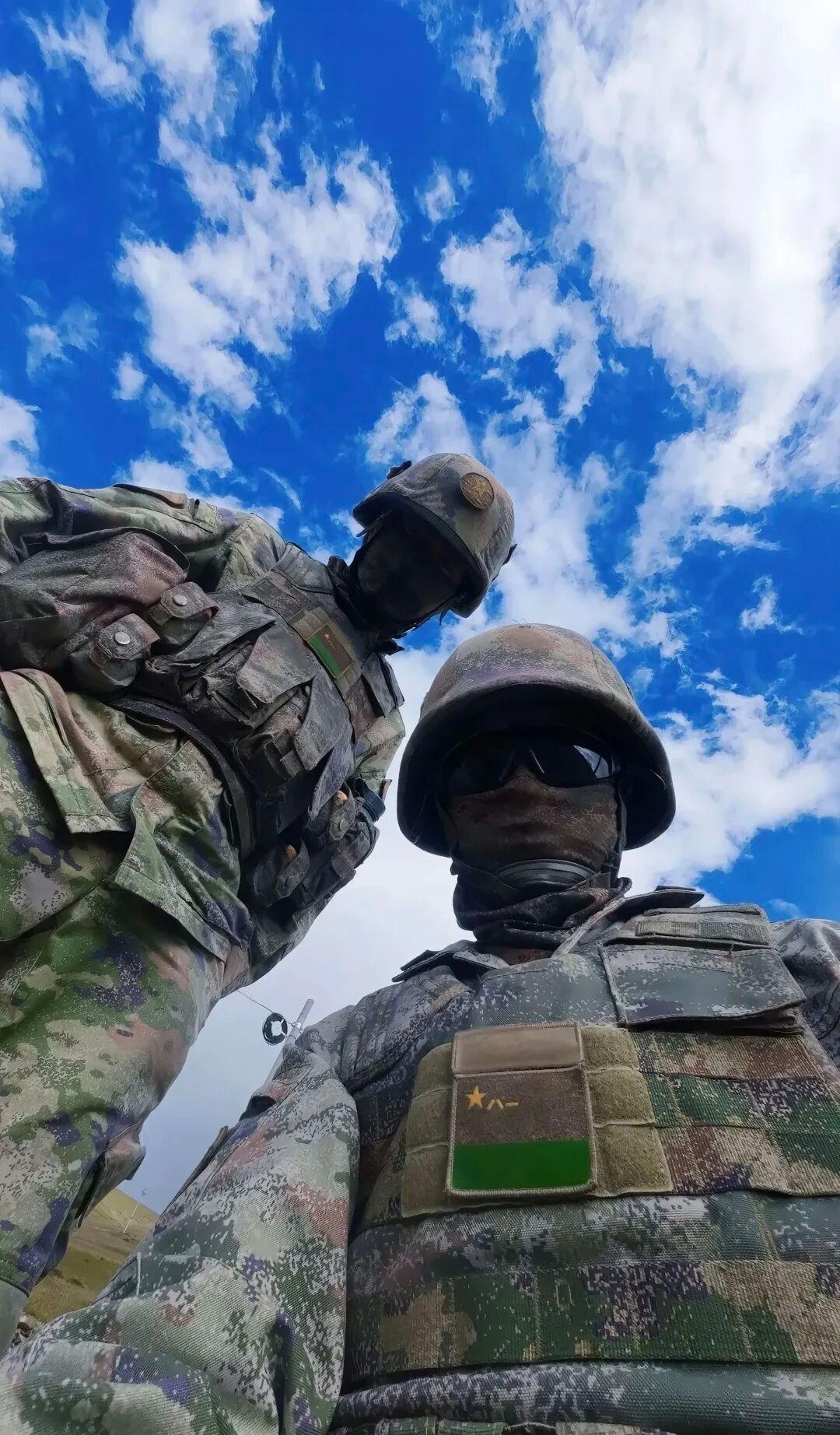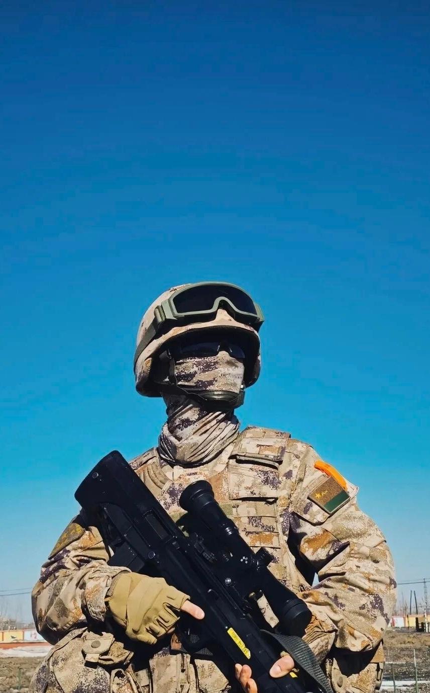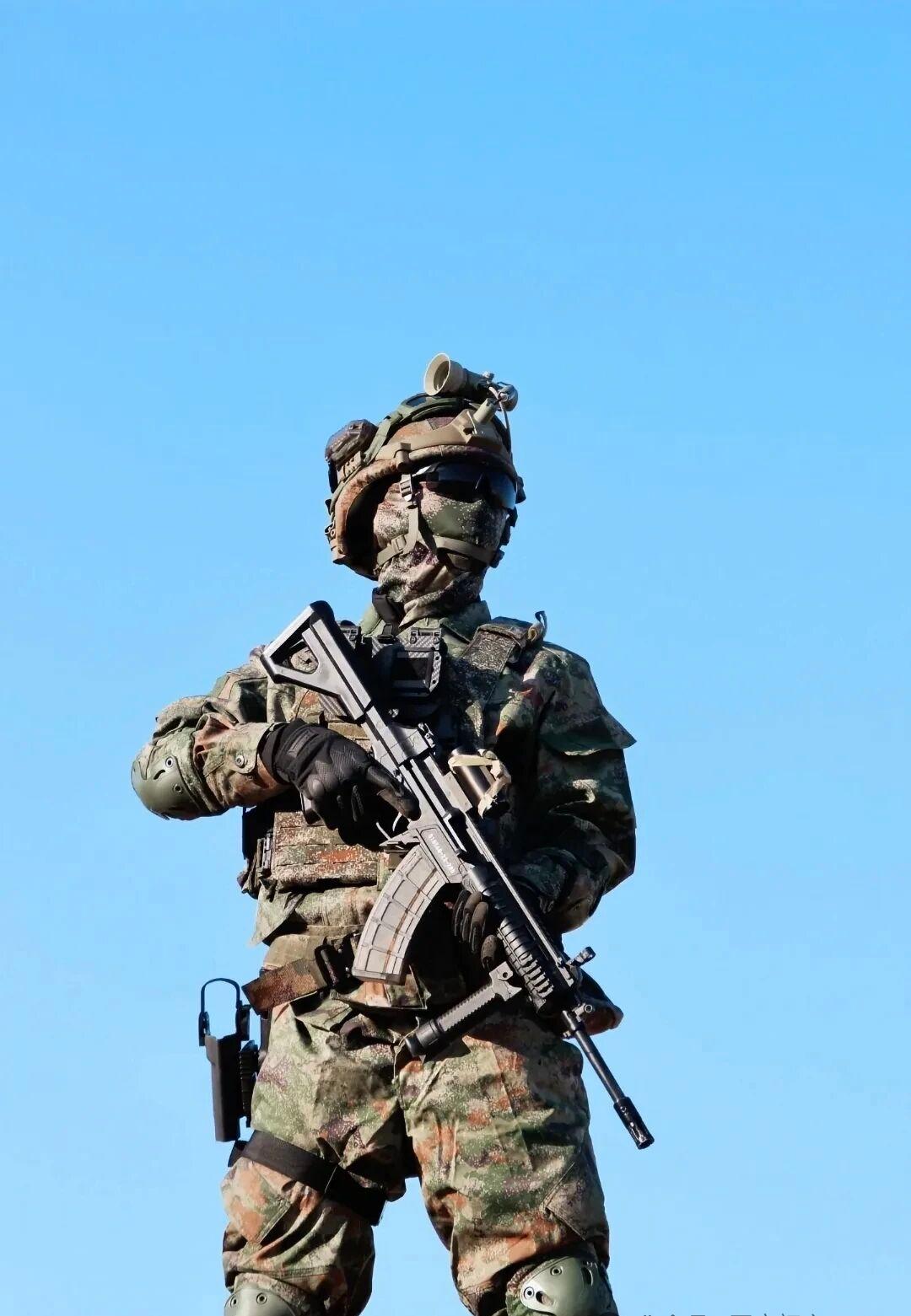 这才是中国军人的硬核气场…… 蓝天为幕,戎装为甲 一身星空迷彩+新式突击步枪 头盔夜视仪、战术装具拉满细节 每一处棱角都写着“安全感”