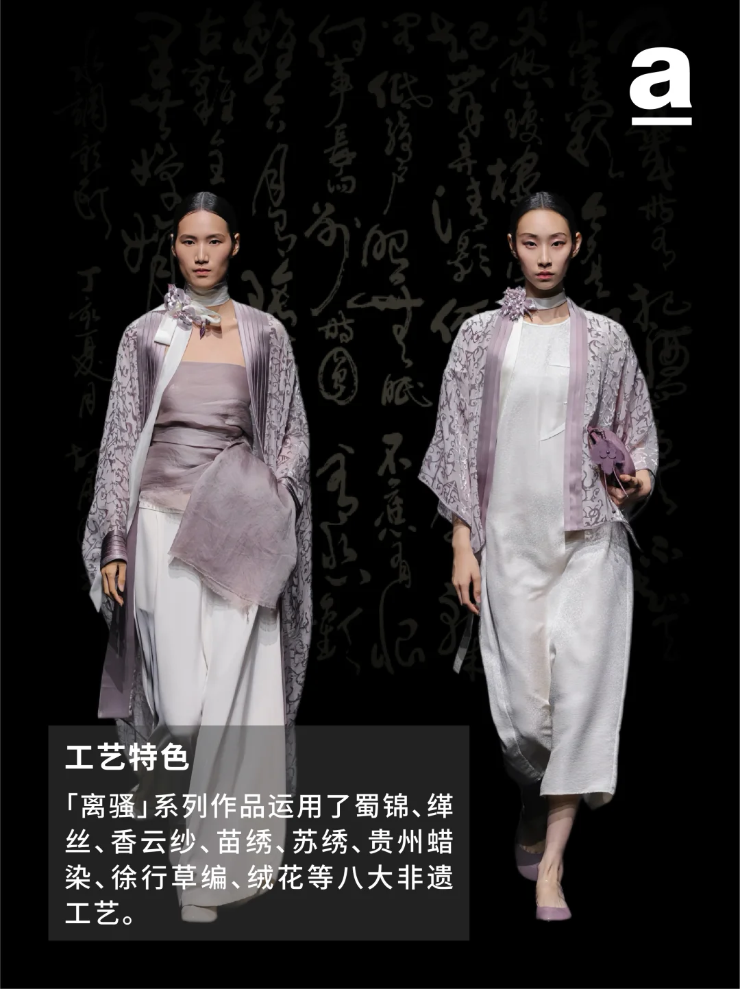 作为上海本土品牌真的把 “文化入衣” 做到了极致!最新 “离骚” 系列一出场就惊艳全场,开篇的鼓点搭配水袖舞,瞬间把人拉回两千年前的楚地时空。