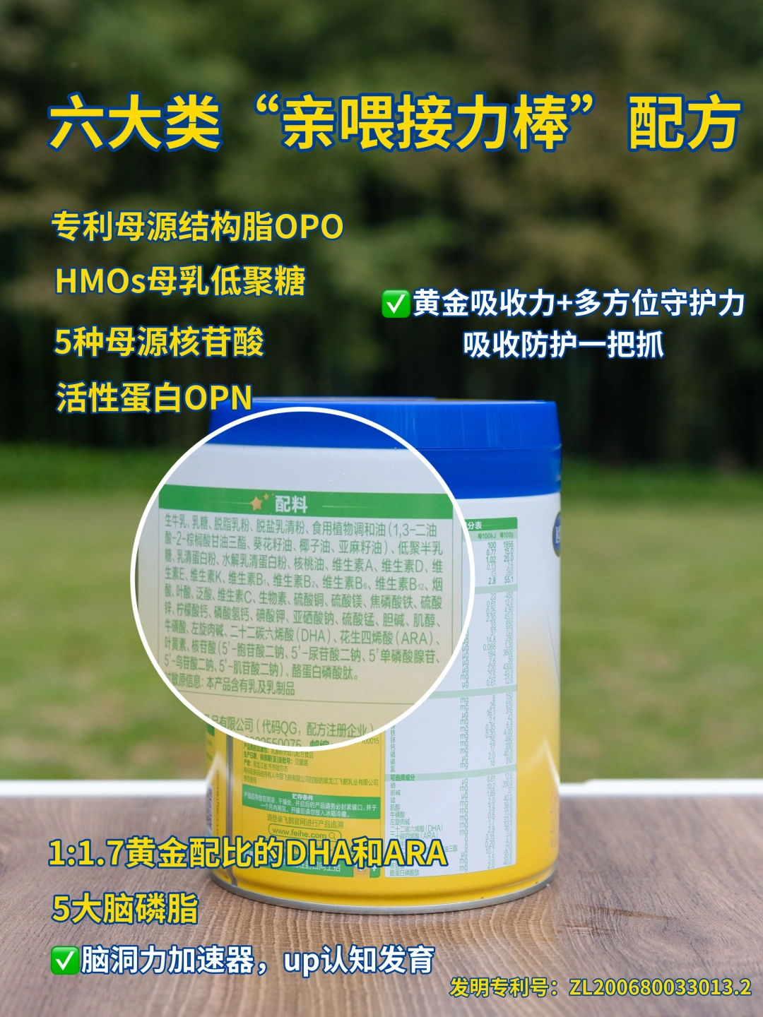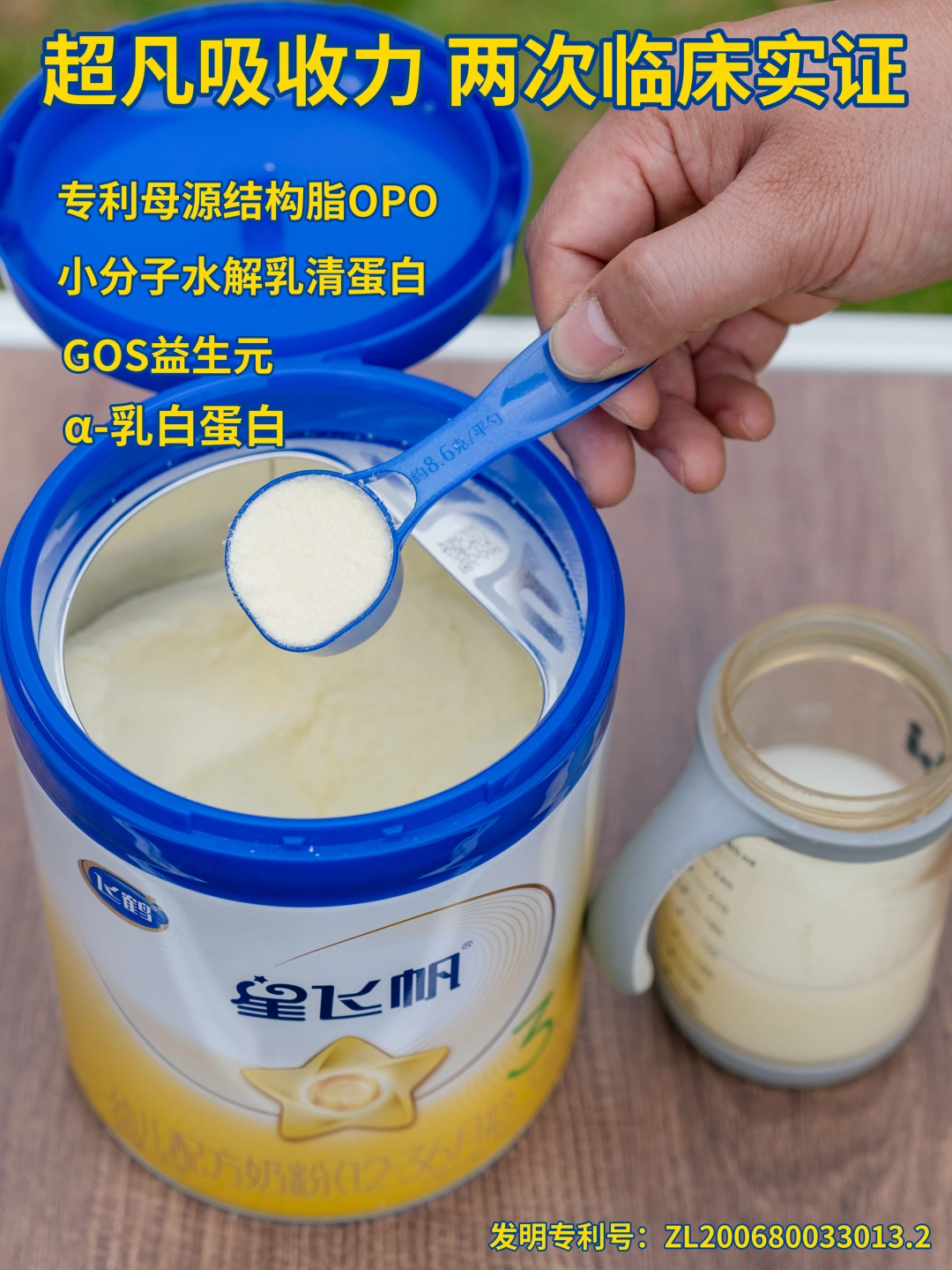 飞鹤星飞帆的核心成分专利结构脂OPO(发明专利号:ZL200680033013.2)搭配小分子水解乳清蛋白、GOS益生元、α-乳白蛋白等,像给宝宝的小肚肚开了🌱“绿色通道”,不闹“小脾气”🙅,两次临床实证也证明它真的“好吸收”!均均转奶期嗯嗯💩一直金黄柔软,人也“蹭蹭长肉”!体重一直稳步增长📈,小胳膊小腿摸起来结结实实的