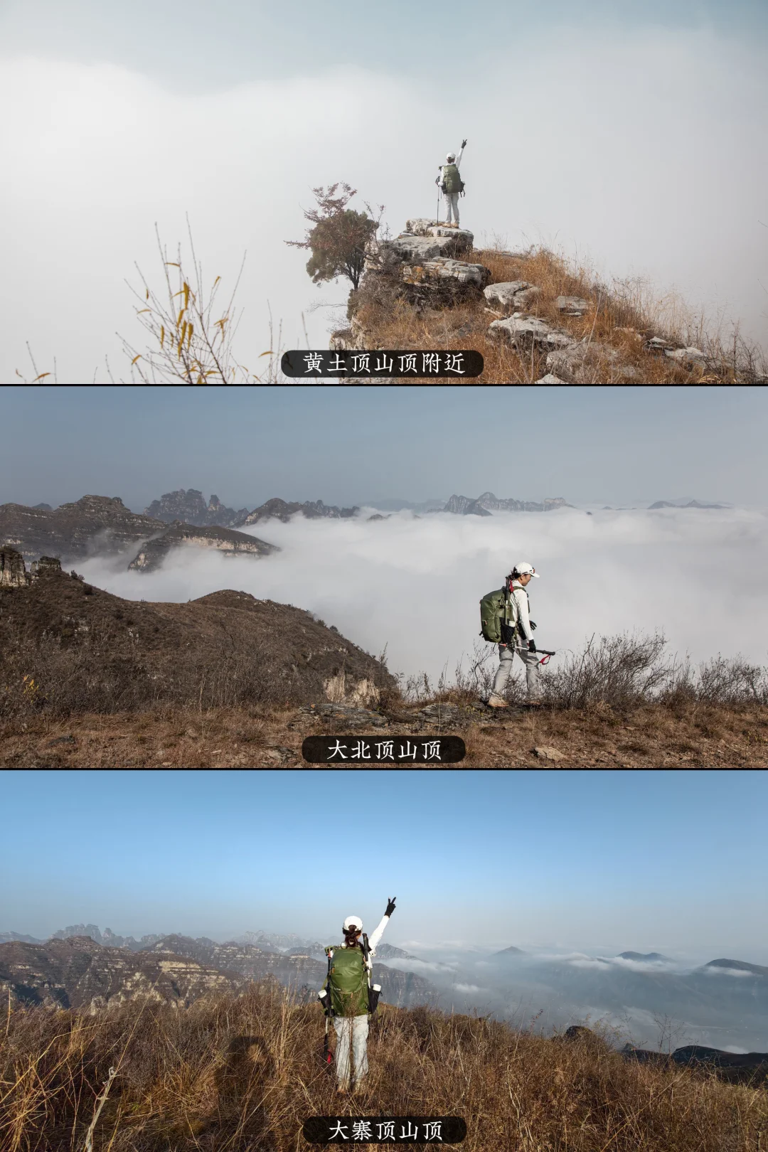 ❷涞水三顶指的是852米的黄土顶、879米的大北顶和935米的大寨顶