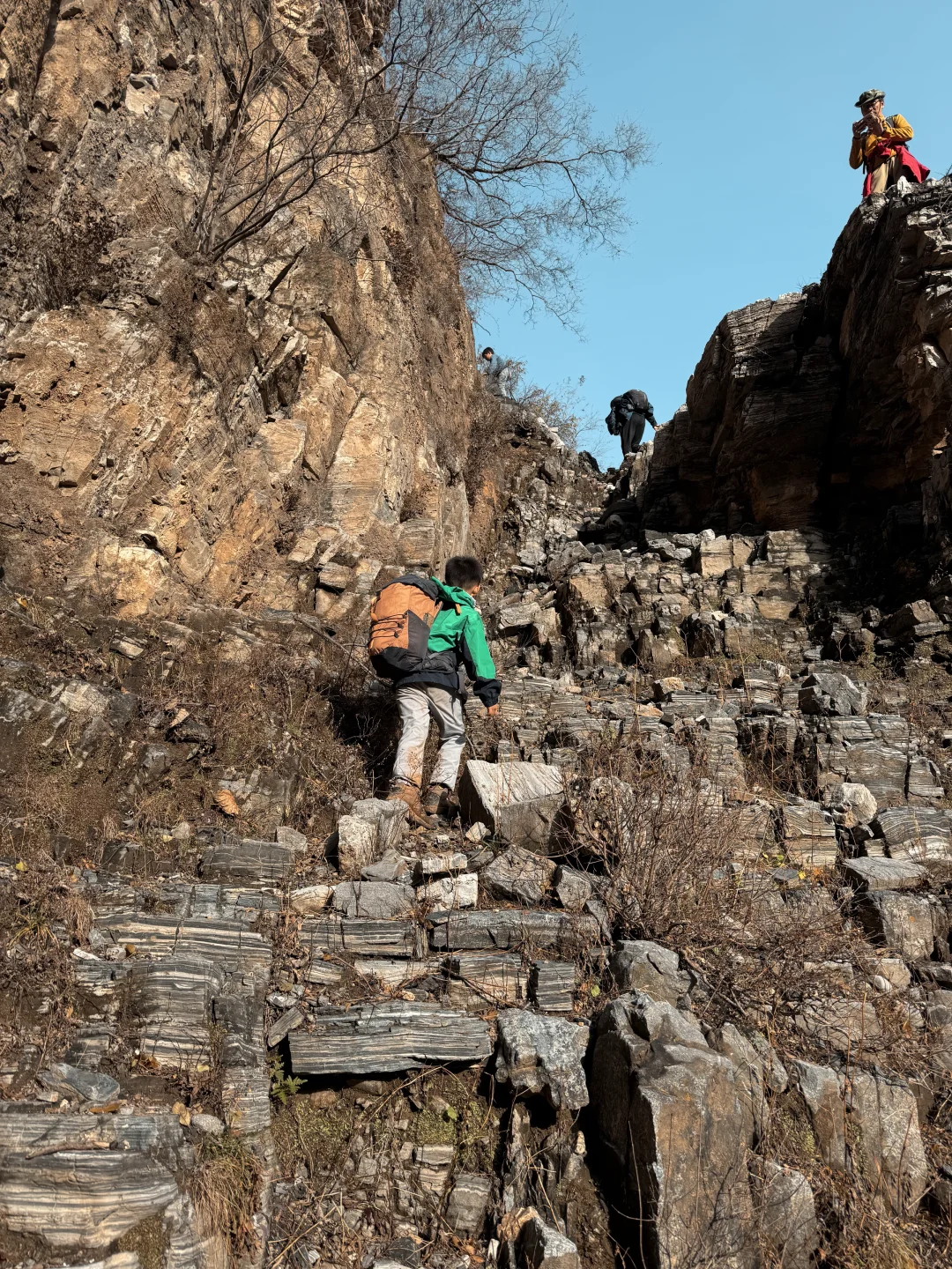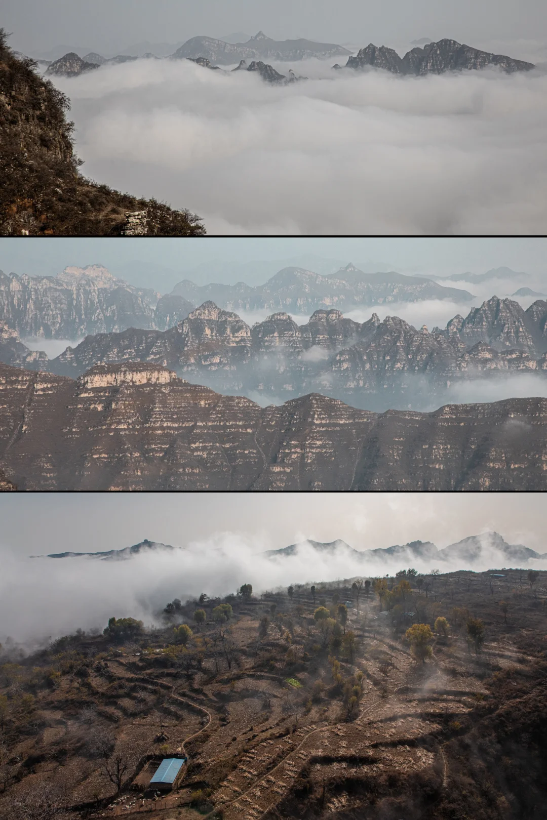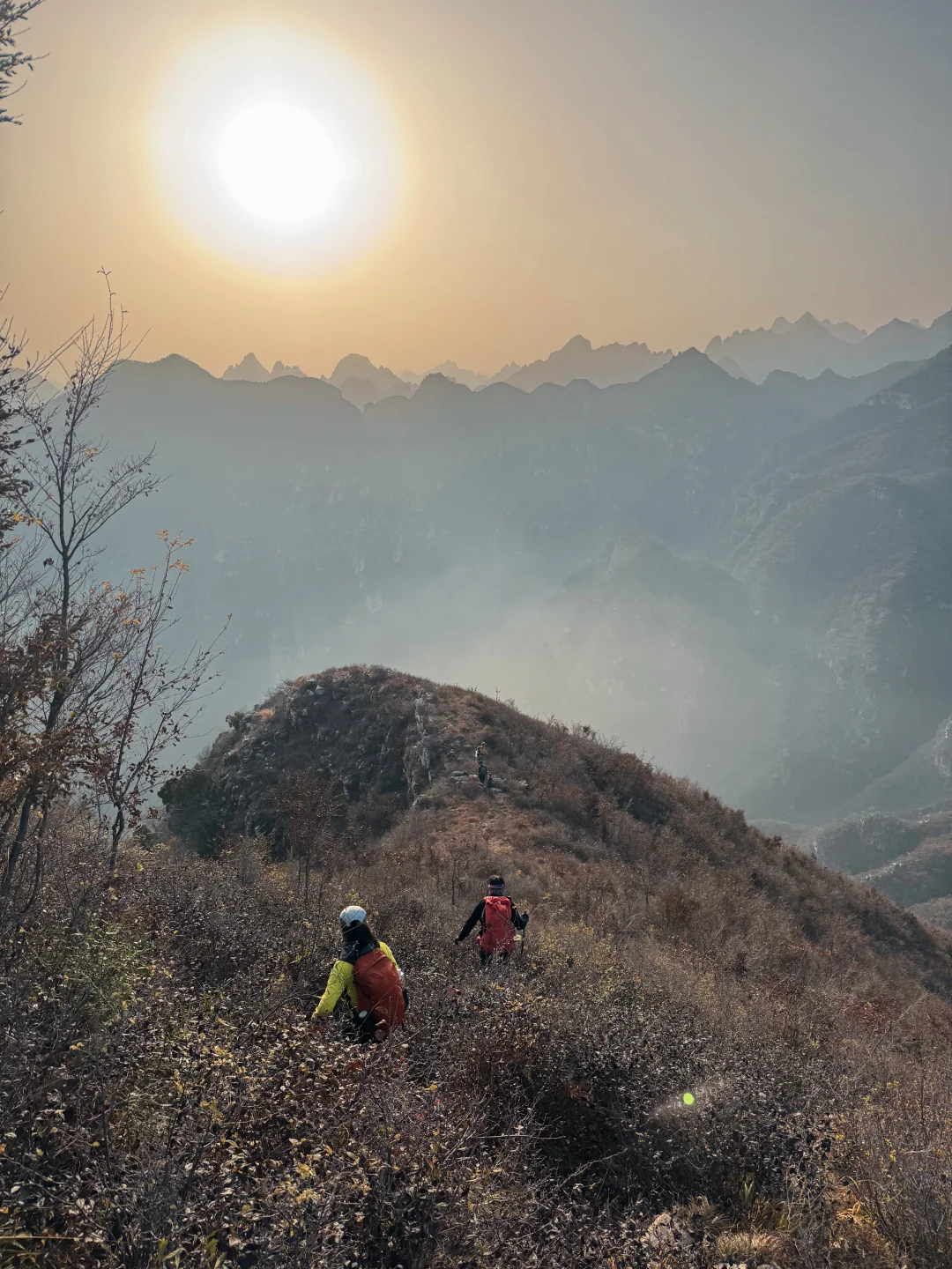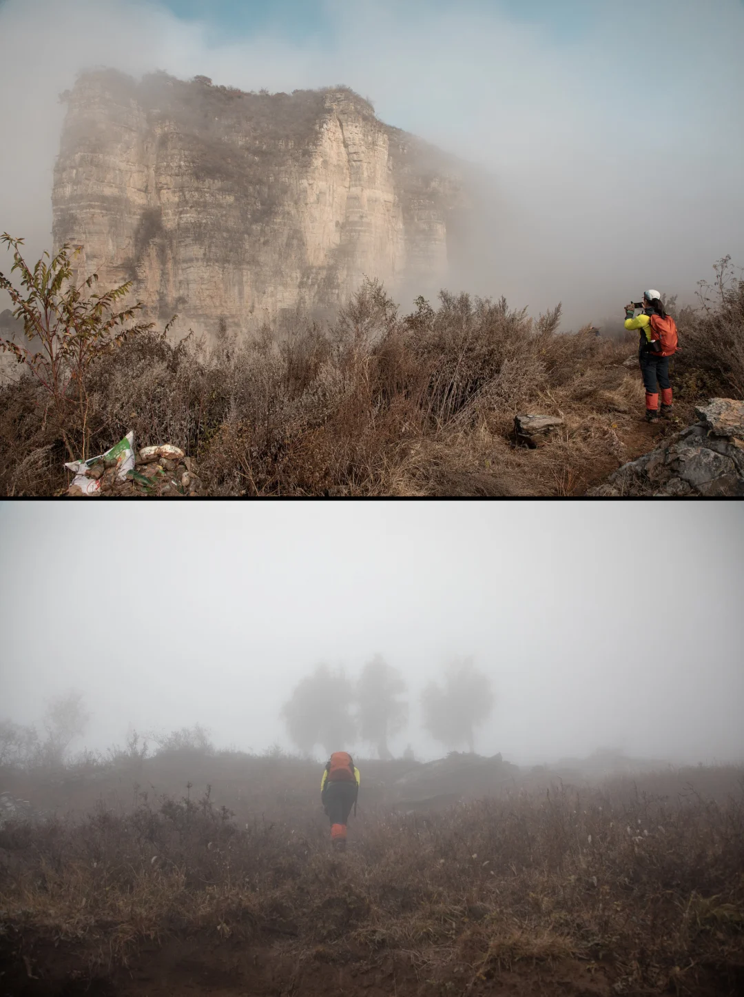 📍此路线不适合雨后走,土坡和崖边都容易打滑,难度和危险度都会增大;但任何事情都有两面性,前一天下雨第二天晴天,我们遇见了壮观的云海。涞水三顶所见群峰巍峨峥嵘,直插云霄,在浩瀚无垠的云海中时隐时现,我们宛如行走在天上人间。