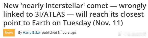新彗星今日掠过地球,差点误认为“星际访客”!11月10日,据LifeScienc