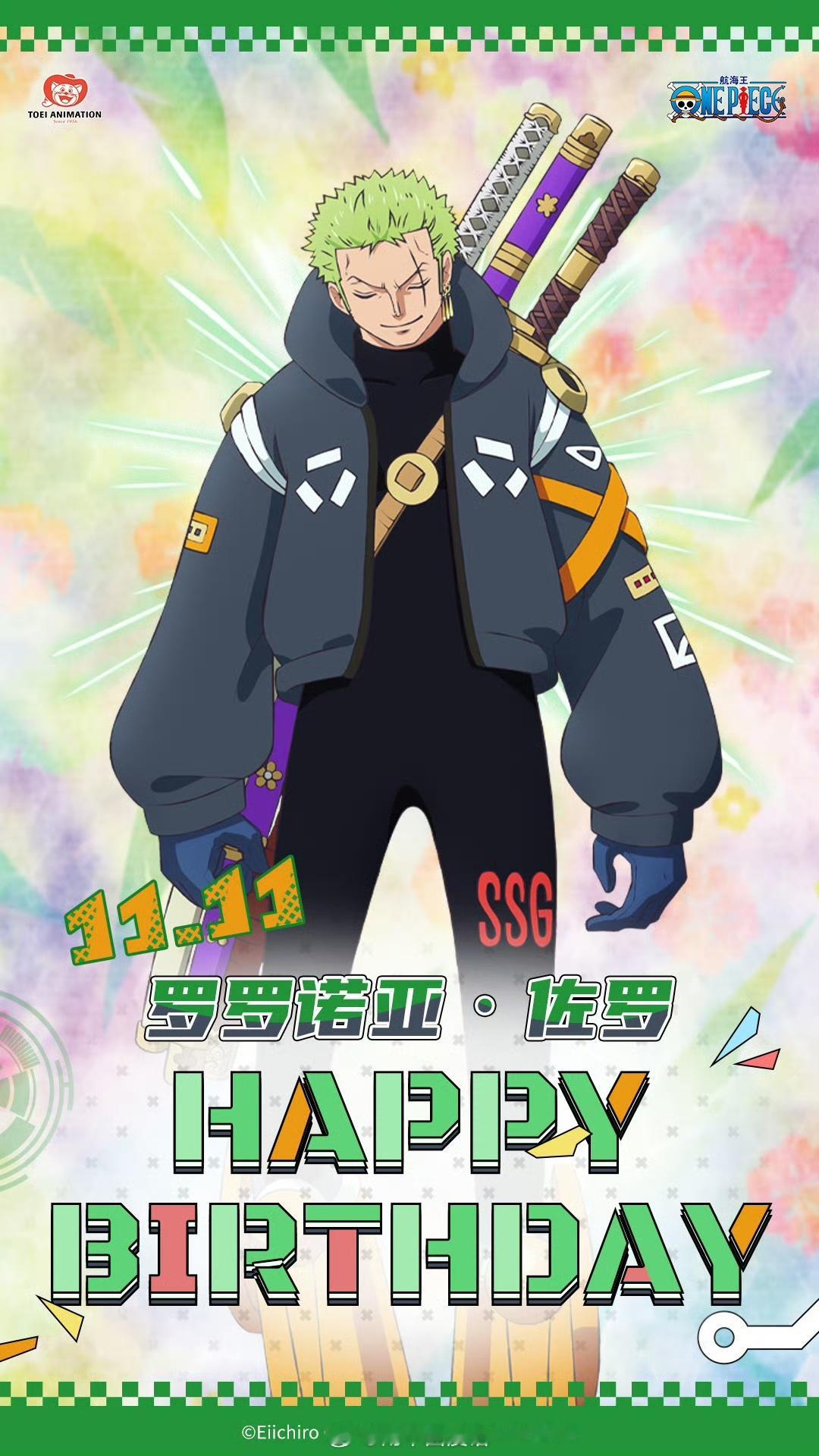 绿发映刀光,三刀破穹苍!祝索隆生日快乐!从东海的誓言到新世界的锋芒,你以刀为骨、以信念为魂,在追梦路上从不退缩。愿你前路无荆棘,酒盏常满盈,早日成为世界第一大剑豪,让名号响彻整片大海!
