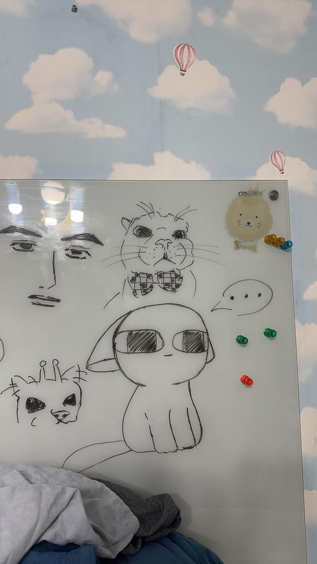 简笔画 抽象 画画 猫 洗袜袜 只这样的,我的房间有块白板……