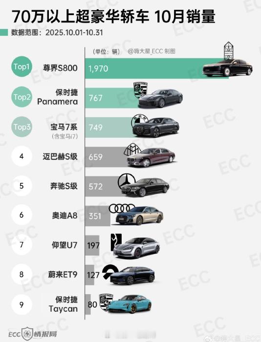 10月各个车型的零售数据:问界M8 和 问界M7,构成了品牌销量的主力📛 车型 10月销量(辆)问界 M8 17,484 问界 M7 16,071 智界 R7 8,944 问界 M9 8,010 尚界 H5 6,284 享界 S9T 4,847 尊界 S800 1970问界系列表现强势:问界M8和问界M7两款车型销量领跑,构成了鸿蒙智行销量的第一梯队。其中,问界M7的销量环比有显著增长,改款后市场需求的持续释放和产能爬坡是其表现强劲的原因之一。问界M9稳守高端:问界M9在10月交付了8,010辆,并连续多月稳居国内50万元以上豪华SUV销量榜首,展示了其在高端市场的稳固地位。新势力增长迅猛:智界R7 10月销量达到8,944辆,作为智界系列的车型,其增长势头十分明显。小众市场取得突破:享界S9T作为一款新能源旅行车,在30万以上的售价区间,10月取得了4,847辆的成绩。这在相对小众的旅行车市场是一个较为出色的表现。尊界S800稳坐70 万以上的超豪华轿车榜首