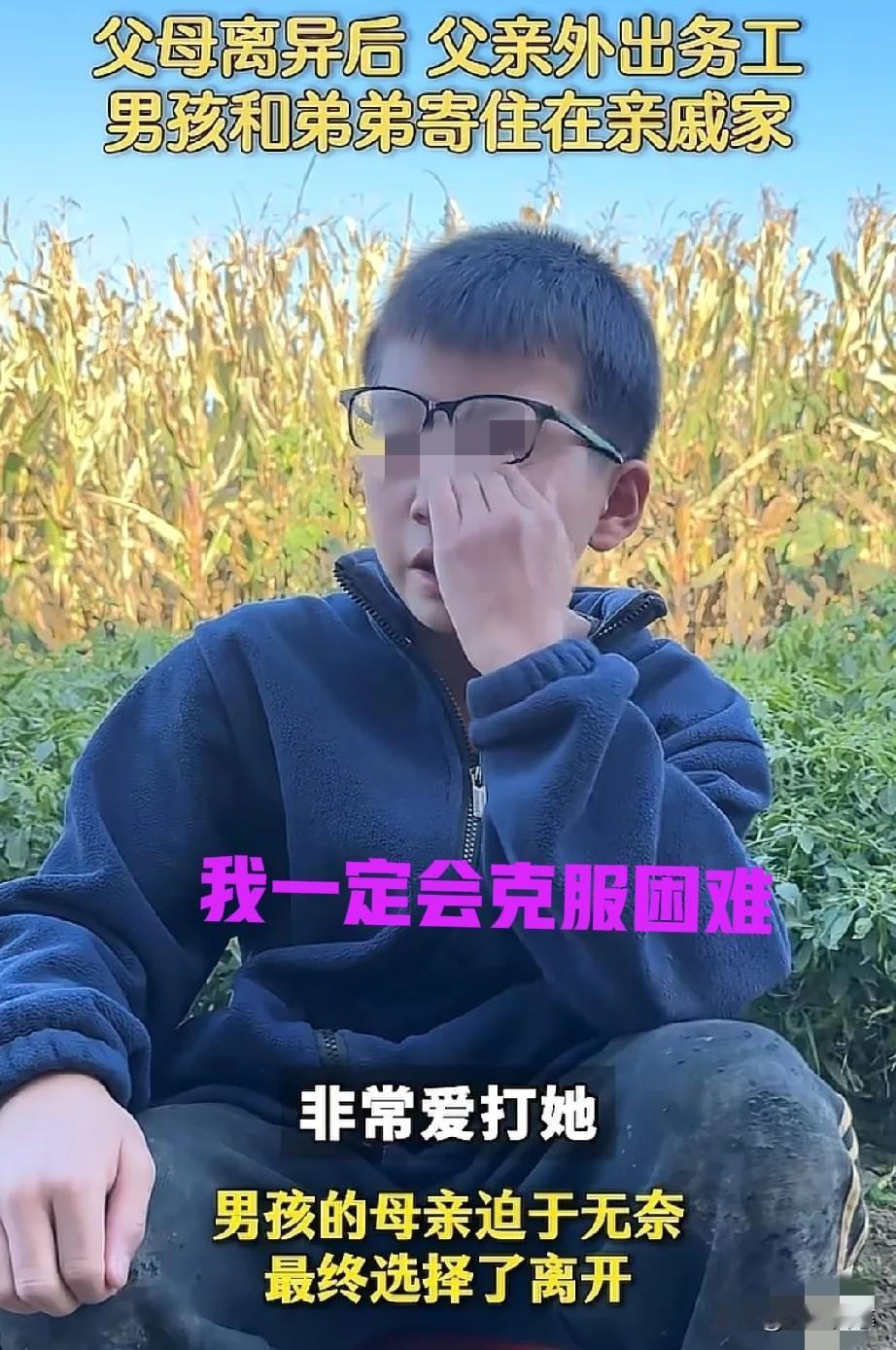 “我妈从我5岁就走了”,男孩含泪谈母亲:我不怪她! “爸爸经常打妈妈,妈妈被迫与爸爸离婚,爸爸外出打工,我和弟弟从小被亲戚收留!” “我一定会克服困难!”——就冲这句话,我坚信你的未来不可限量!记住今天的不易,它将是你明天最坚硬的铠甲。加油! 你们虽然失去了父母的日常庇护,却早早学会了坚强!相信你们的未来,一定会因为今天的坚韧而闪闪发光!
