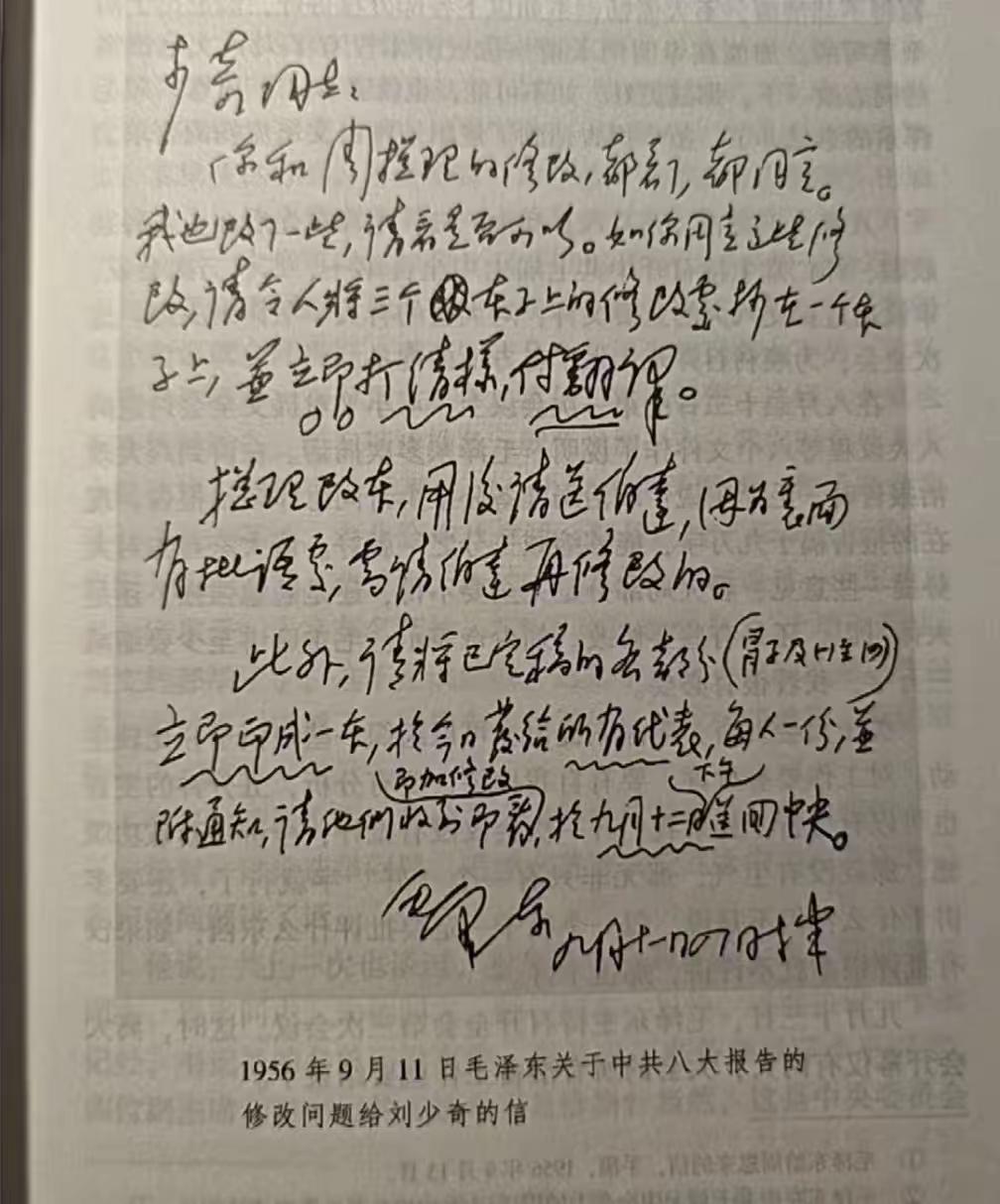 很少见的毛主席硬笔书法!毛主席给刘少奇的信,是1956年11月,对中共八大报告关于周总理、少奇同志和毛主席自己修改的问题的信函。此信虽然是用硬笔书写,但与毛笔书法并无二致,挥洒自如,行云流水,气势磅礴!保持着毛体书法的特点特色。毛主席硬笔书法比较少见!
