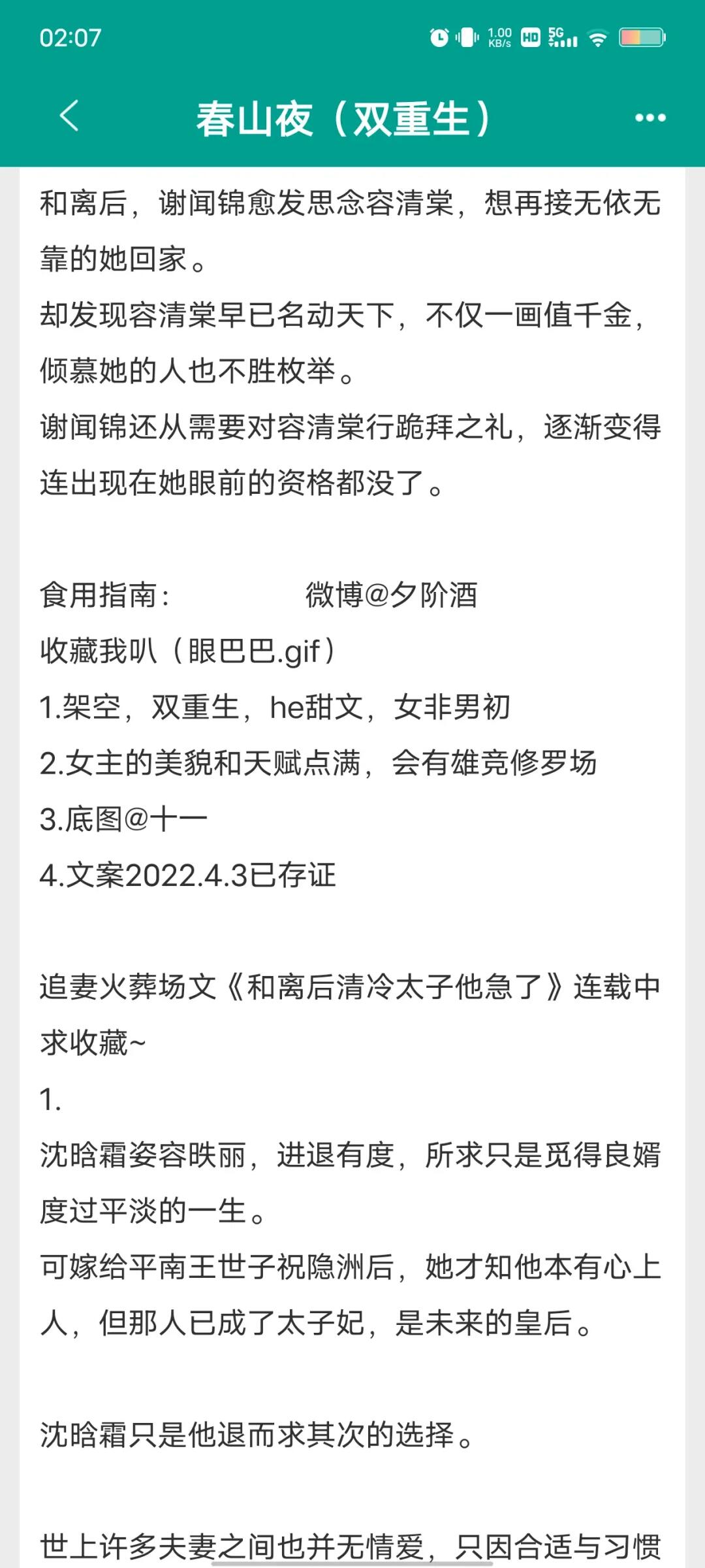 《春山夜》by夕阶酒 23年完结的新文,一共117章。 女主重生踹了渣男前夫和男主he 男主也是重生回来的,是帝王。 男主暗恋成真,女主先婚后爱。