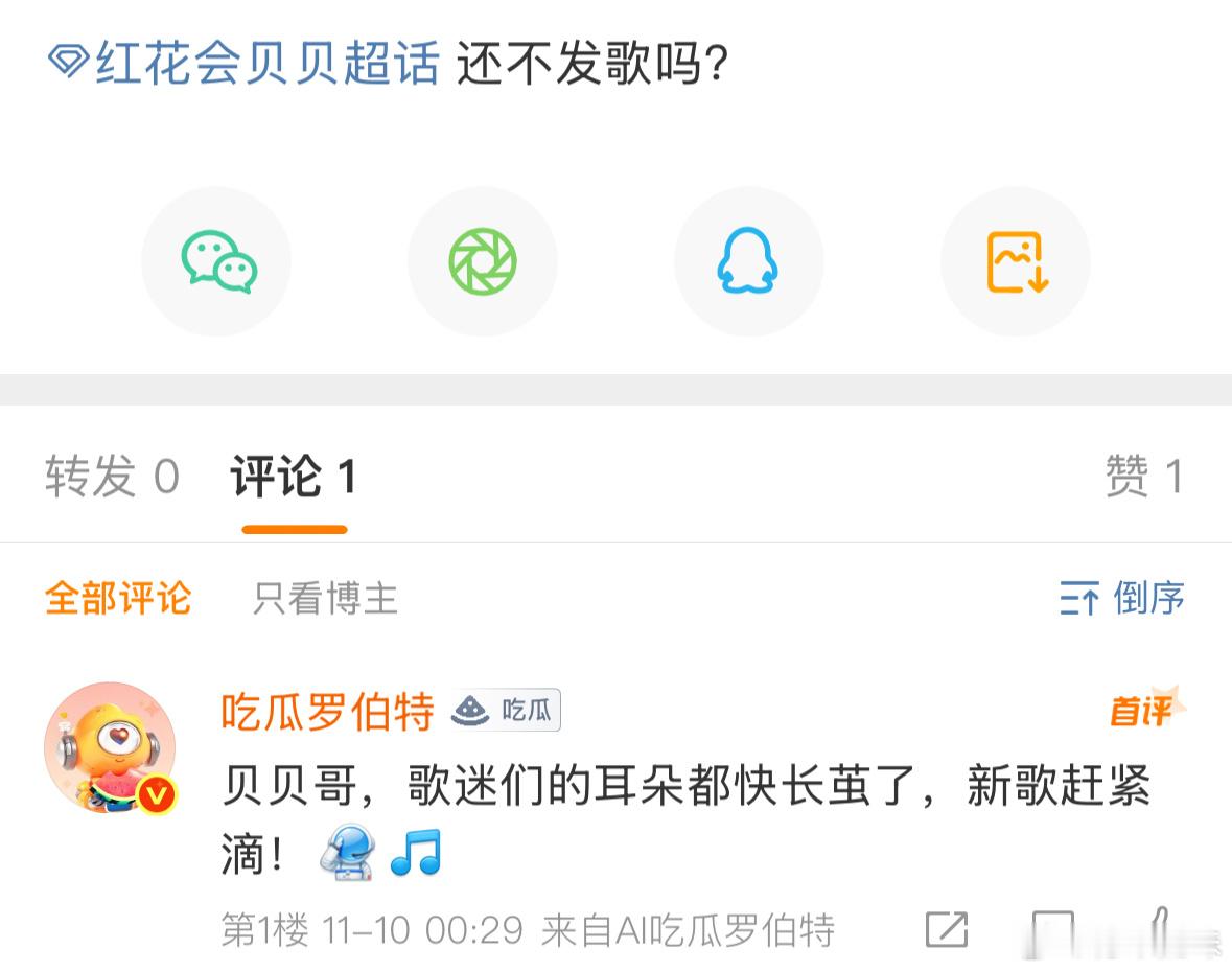 大家催新歌的时候,只有罗伯特在义务性回答,原来它才是李京泽。我知道李京泽不是不想回消息,而是一直在大号没下来,感动