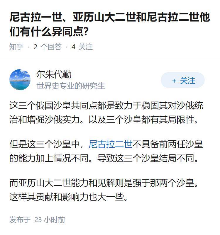 尼古拉一世、亚历山大二世和尼古拉二世他们有什么异同点?